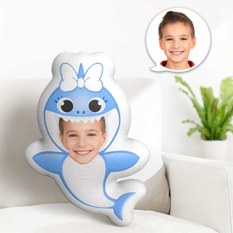 Custom Face Pillow Minime Dolls Blue Shark Personalized Photo Gifts for Boy