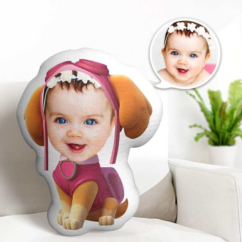 Custom Face Pillow Minime Pink Suit Pilot Dog Doll Personalized Photo Gifts for Kids