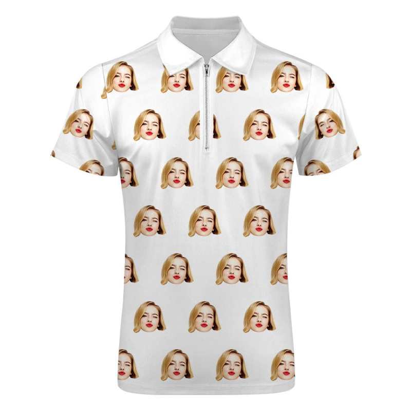 Custom Face Polo Shirt with Zipper Men's Polo Shirt for Him