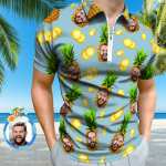 Custom Face Polo Shirt with Zipper Personalized Funny Pineapple Pattern Men's Polo Shirt
