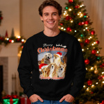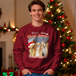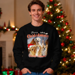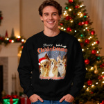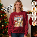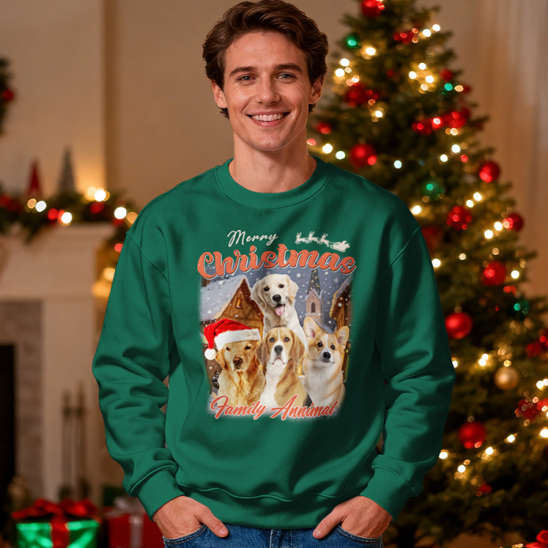 Custom Face Round Neck Hoodie Custom Your Pet Retro Vintage Portrait Christmas Sweatshirt
