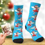 Custom Face Socks Christmas Elf Socks Christmas Gifts Blue