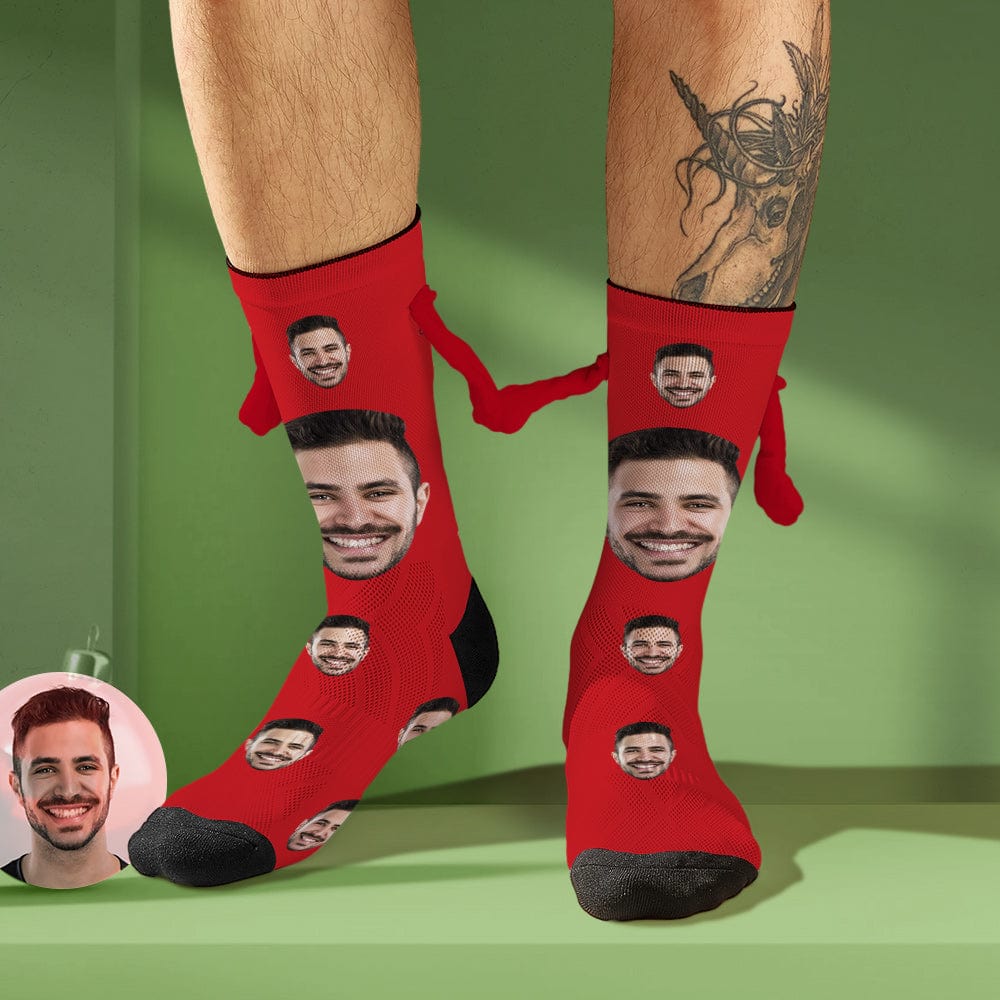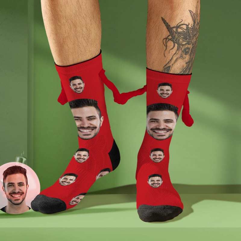 Custom Face Socks Magnetic Holding Hands Socks Funny Doll Mid Tube Socks Christmas Gifts