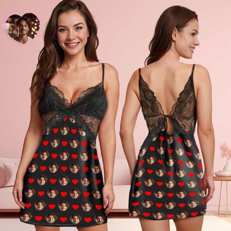 A uniquely personalized expression of love. Elevate bedtime with this enchanting nightwear featuring a back closure, V-neck design, and delicate lace detailing. The ability to customize your boyfriend or husband's face, making it a truly one-of-a-kind gift.