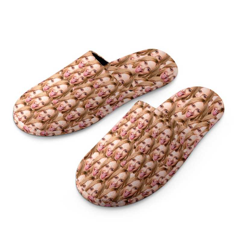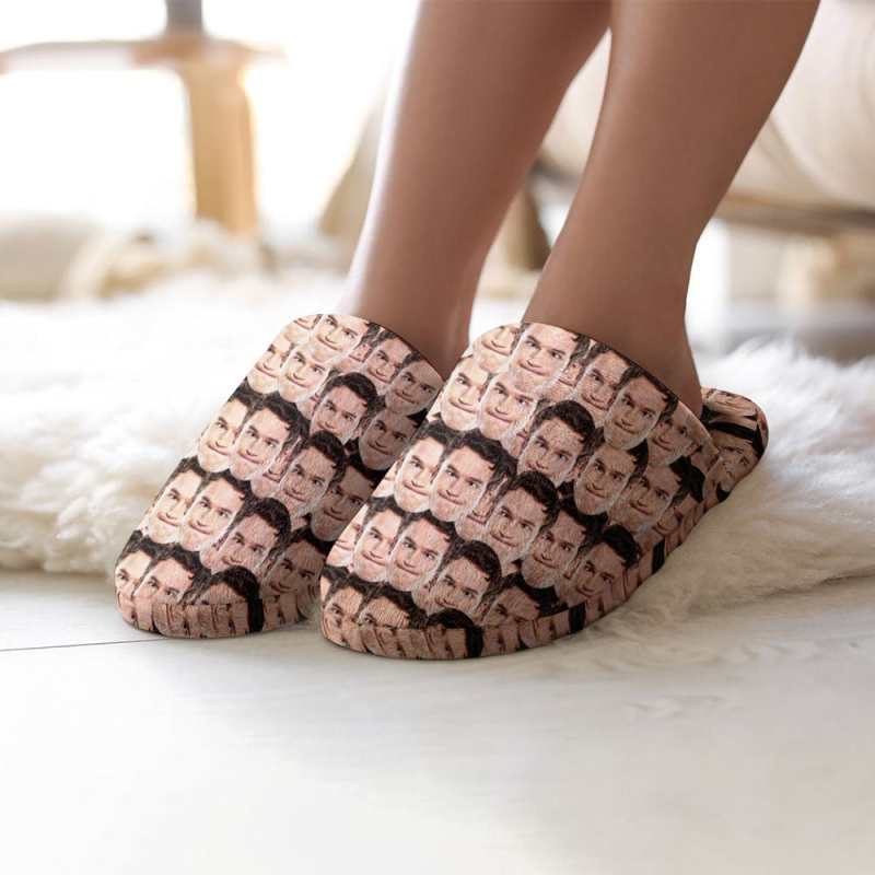 Custom Face Women's and Men's Slippers Personalized Funny Casual House Shoes Indoor Outdoor Bedroom Cotton Slippers