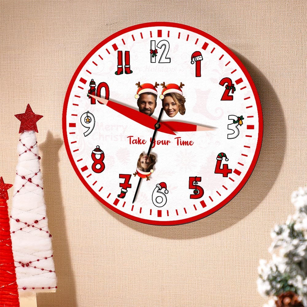 Make a special gift this year with our Custom Family Face Clock! It features your family's faces on the clock in a unique way you won't find anywhere else. Personalize your clock with text that celebratesthe memories you've shared together and make sure it will always be a centerpiece of your home decor. Make this Christmas one to remember!