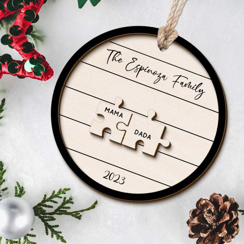 Custom Family Name Puzzle Christmas Ornament Personalized Wooden Christmas Tree Ornament Gifts