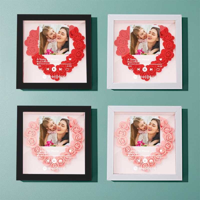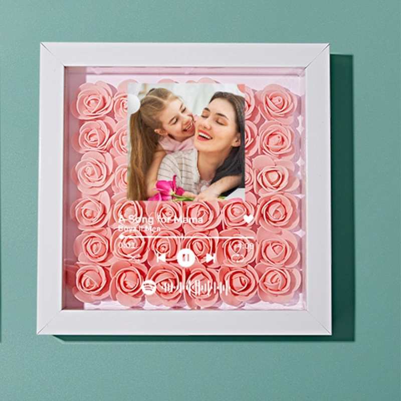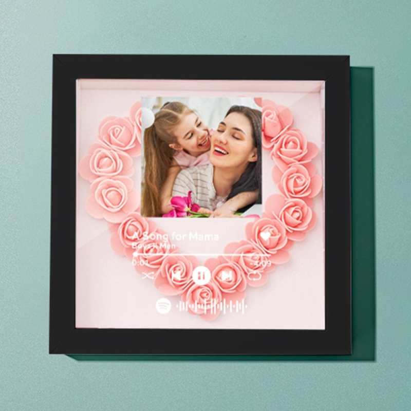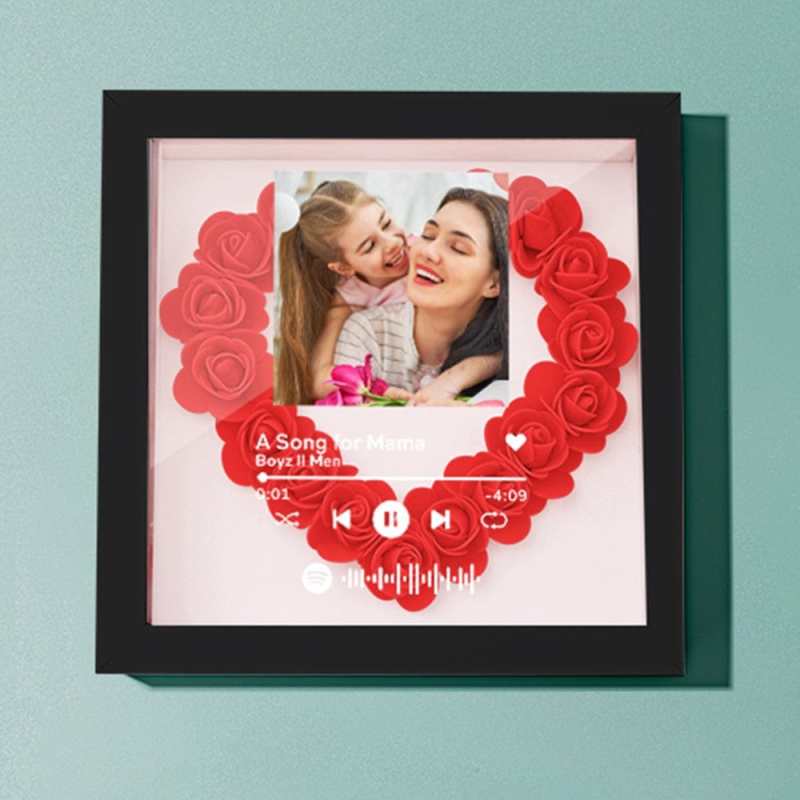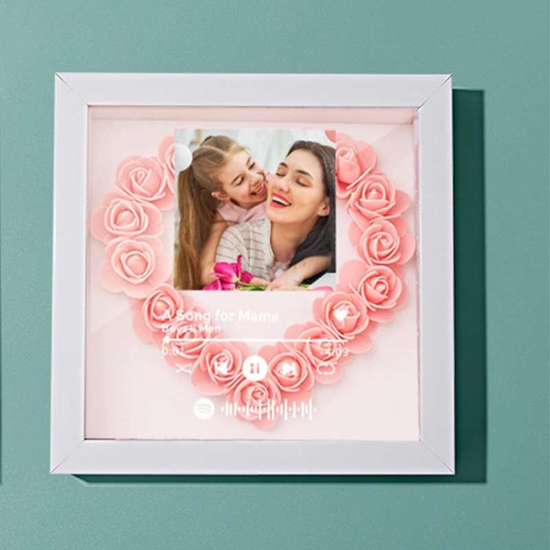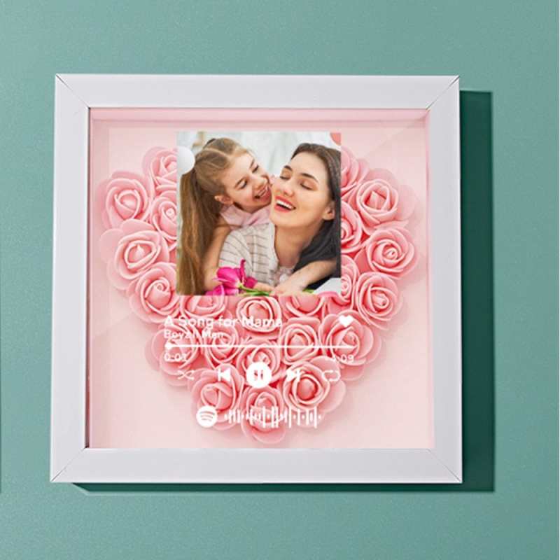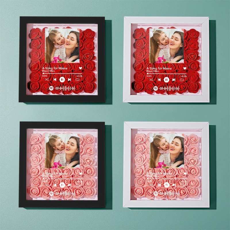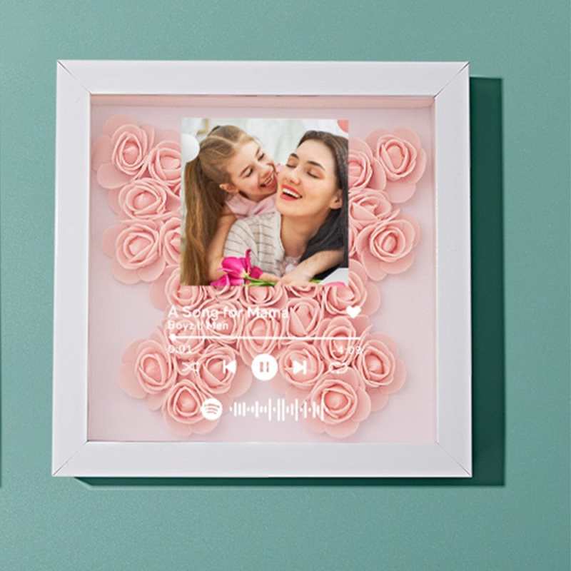 Surprise your loved one with this beautiful, personalized flower shadow box. You can customize it with the picture of you and mom, favorite music and scannable music code to keep your special memories. Show your love with our beautiful roses with varied styles and colors available.