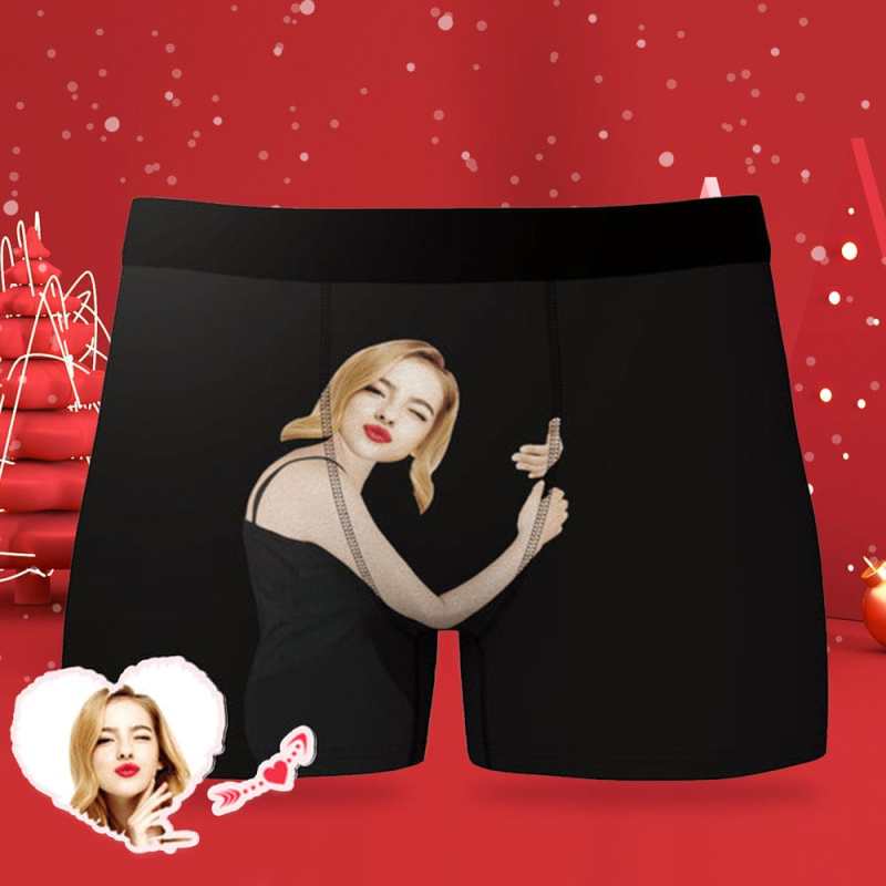 Custom Girlfriend Hugs Boxer Shorts Christmas Gift For Him