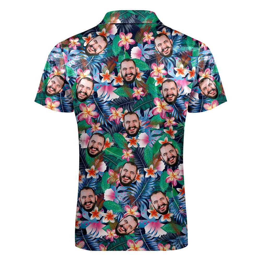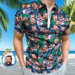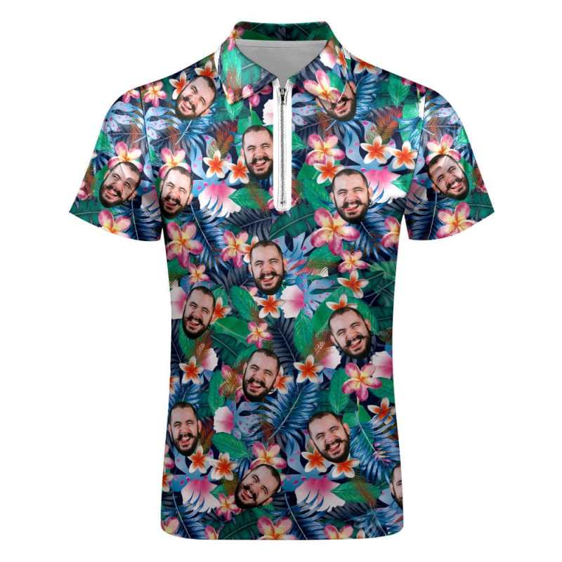 Custom Hawaiian Style Polo Shirt with Zipper Personalized Face Men's Polo Shirt for Him
