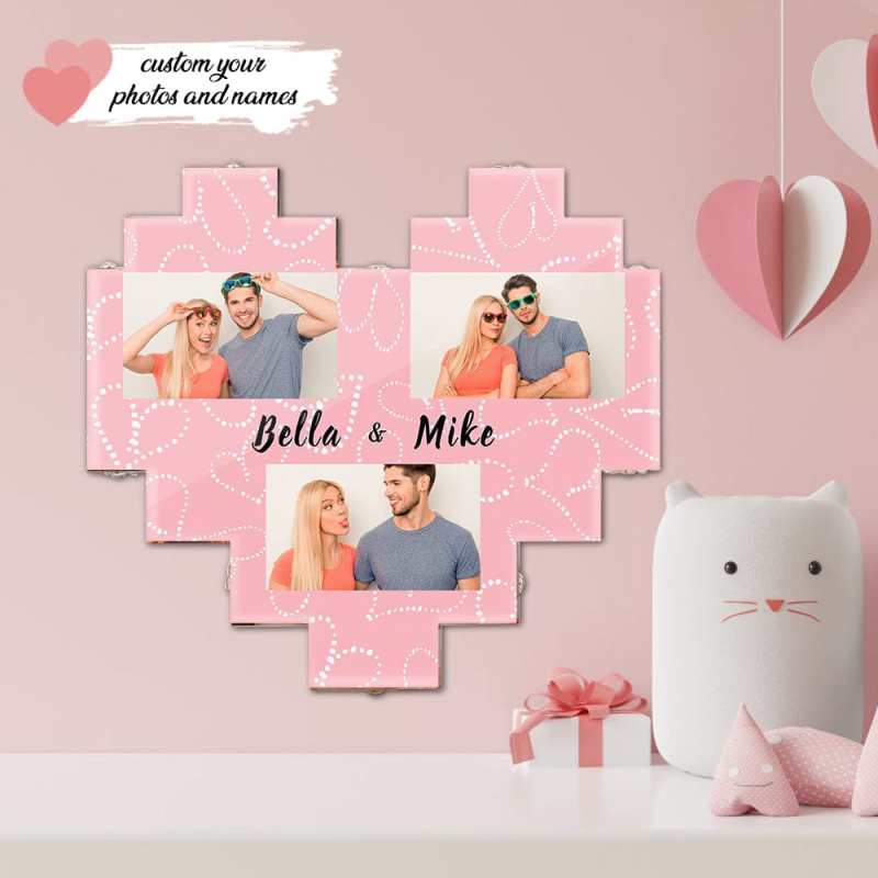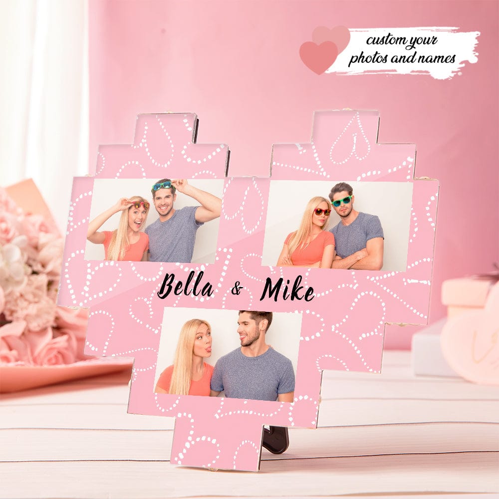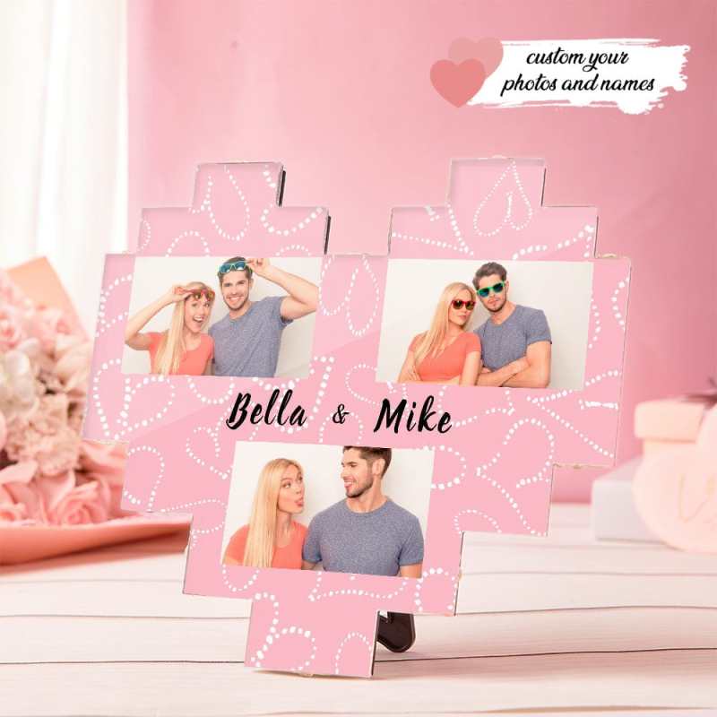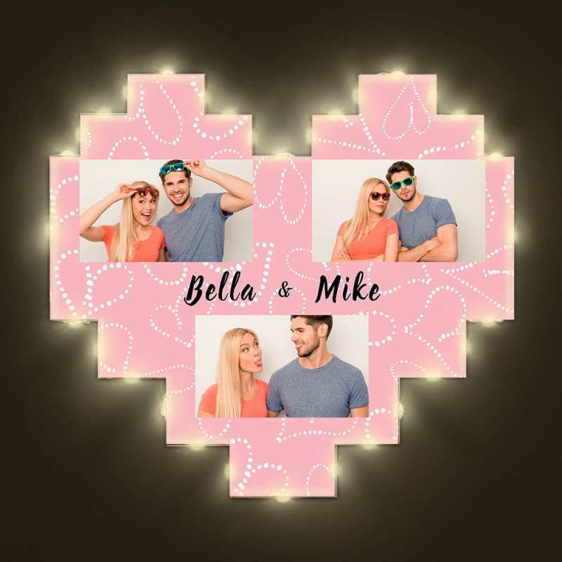 Custom Heart Photo Collage with Light Gifts for Couple Acrylic 3 Photos