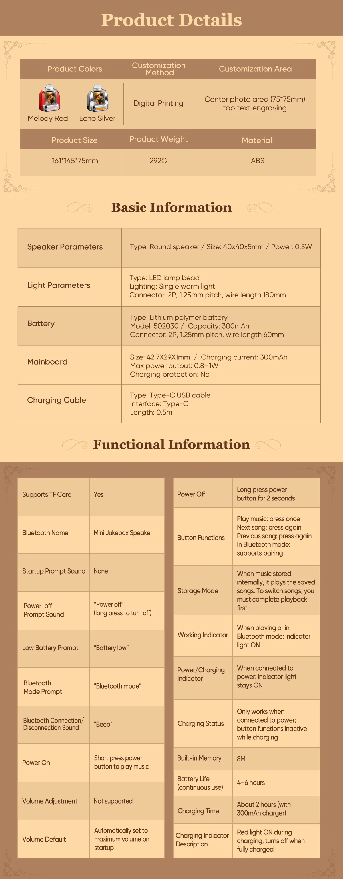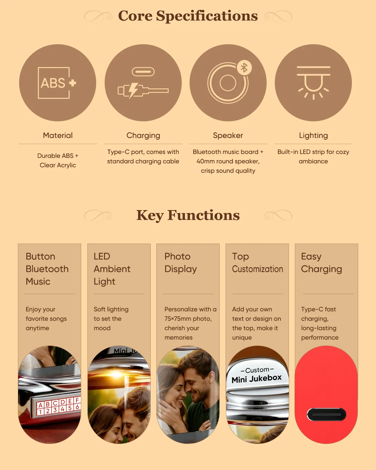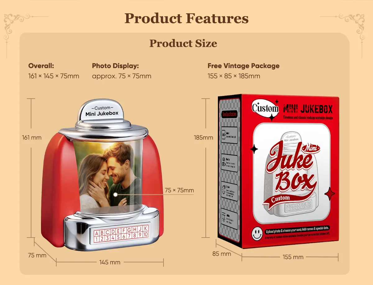 • 🎵Custom Music & Photo-Add your favorite songs or playlists. Display your chosen photo on the jukebox front.1song or 2 Songs.