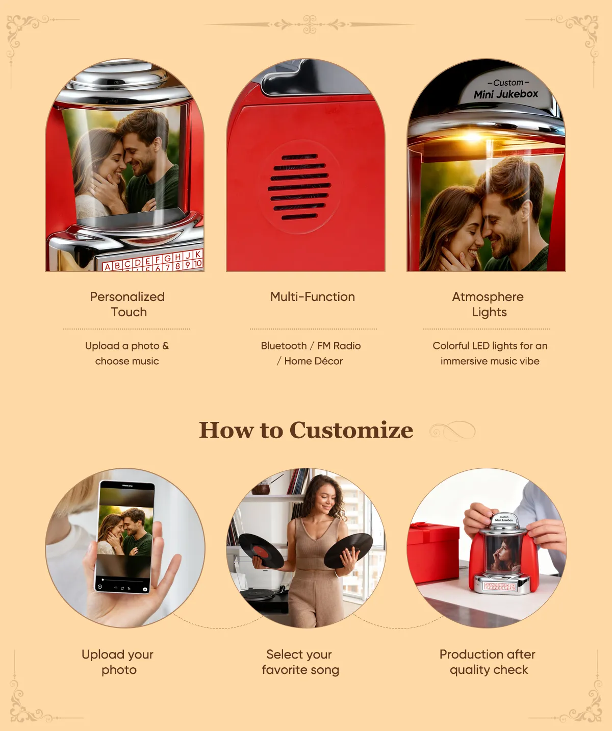 Custom Mini Jukebox Retro Speaker - Personalized Photo,Names & Date Music Mini Player with Bluetooth Music Radio | Vintage Tabletop Home Decor Nostalgic Gift