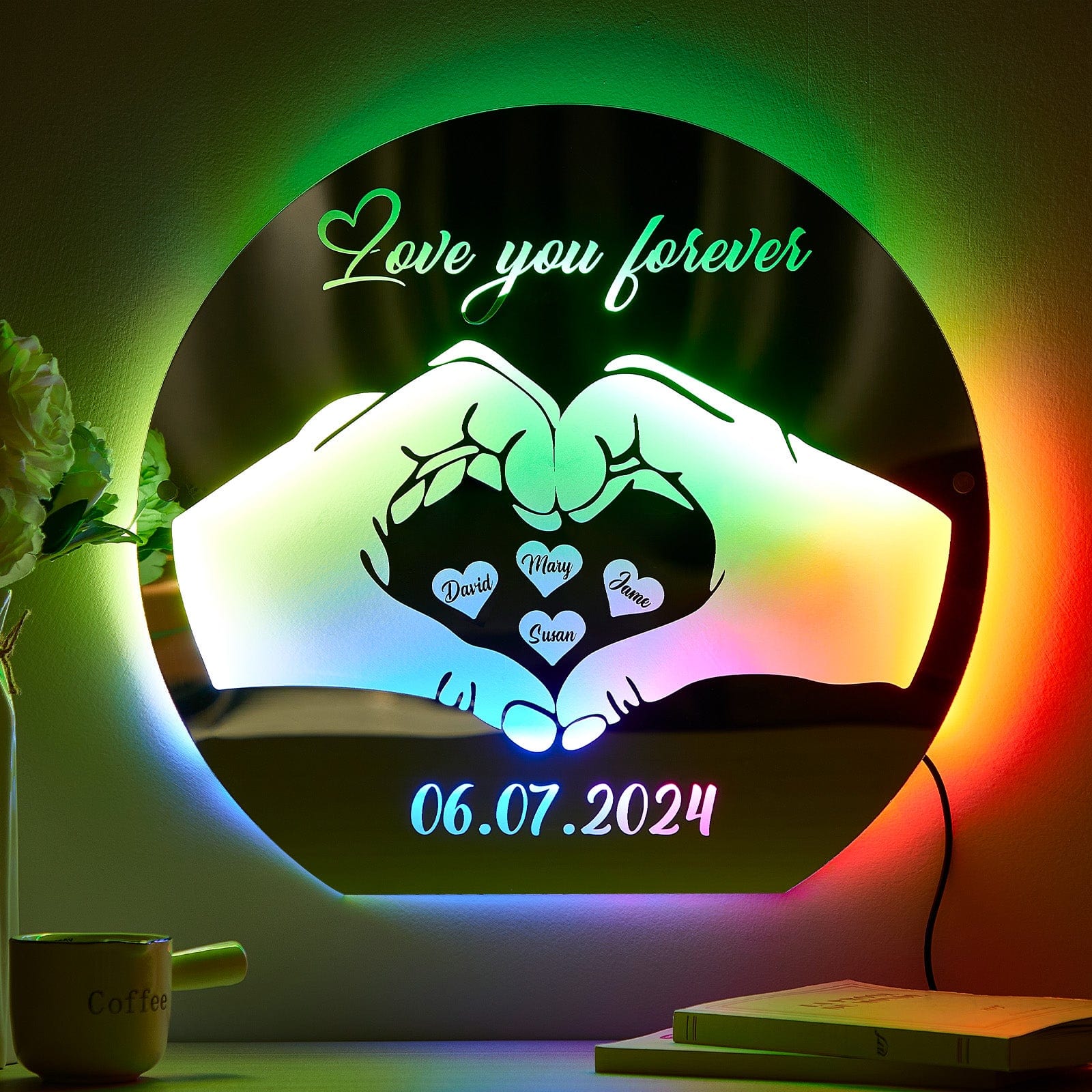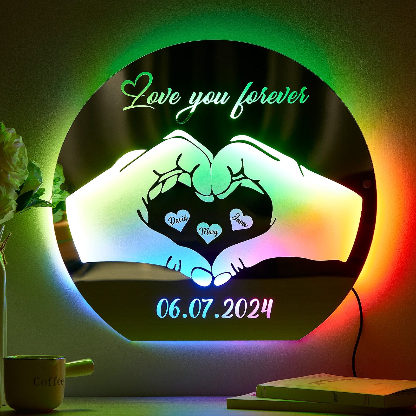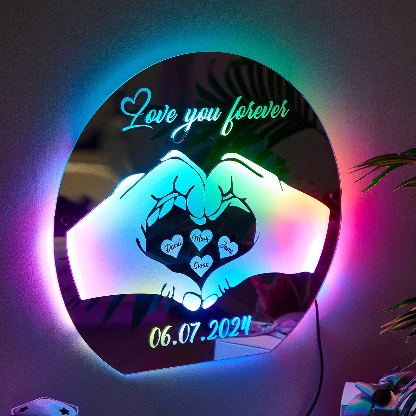 Custom Love Mirror Light with Name and Anniversary Date Personalized Gift for Her