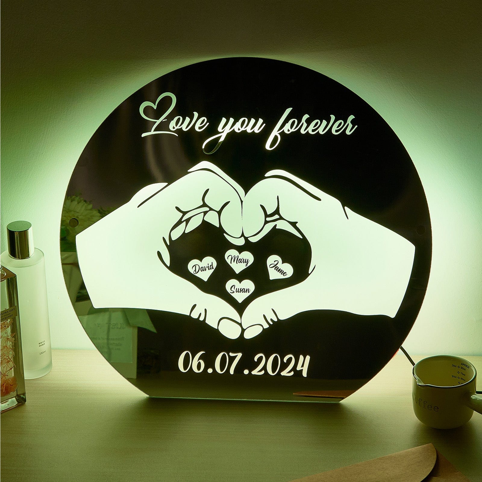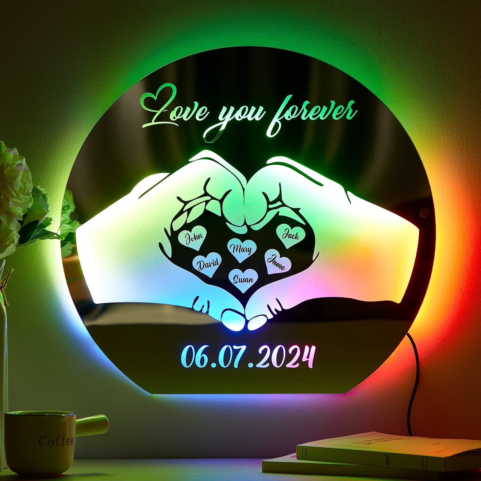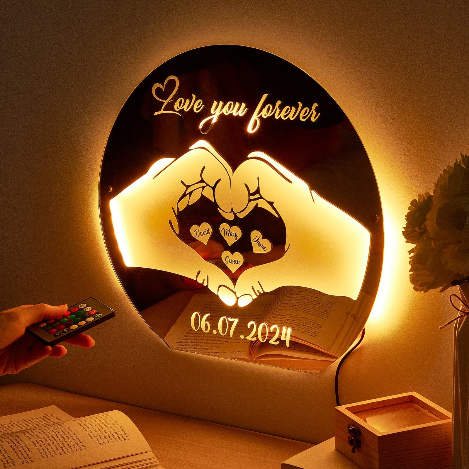 Custom Love Mirror Light with Name and Anniversary Date Personalized Gift for Her
