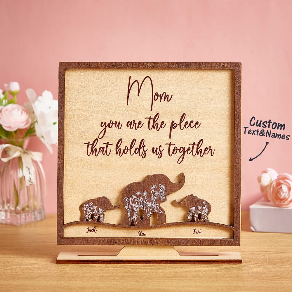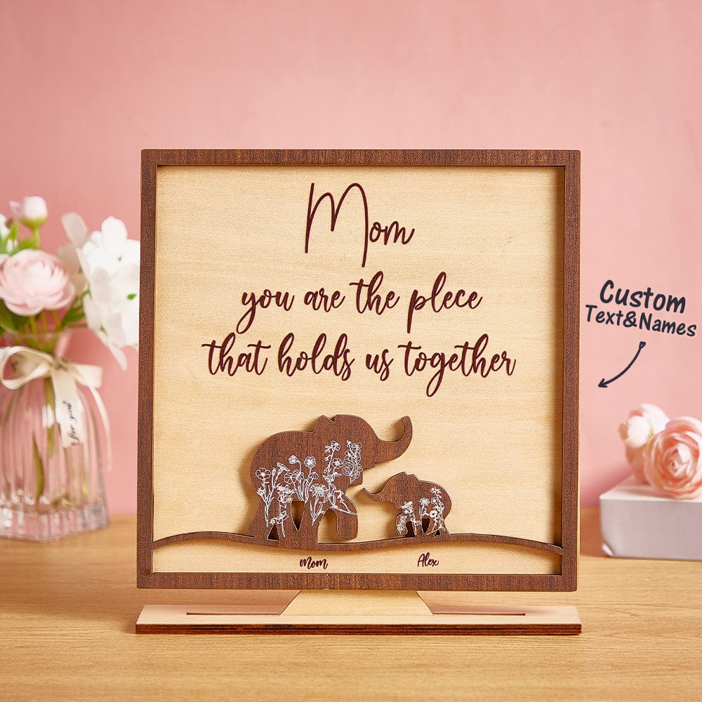 Introducing our Custom Mama and Baby Elephants Wooden Sign. The perfect personalized home decoration and Mother's Day gift. Crafted with care and attention to detail, this wooden sign features an adorable depiction of a mama and baby elephant, symbolizing the strong bond between mother and child.