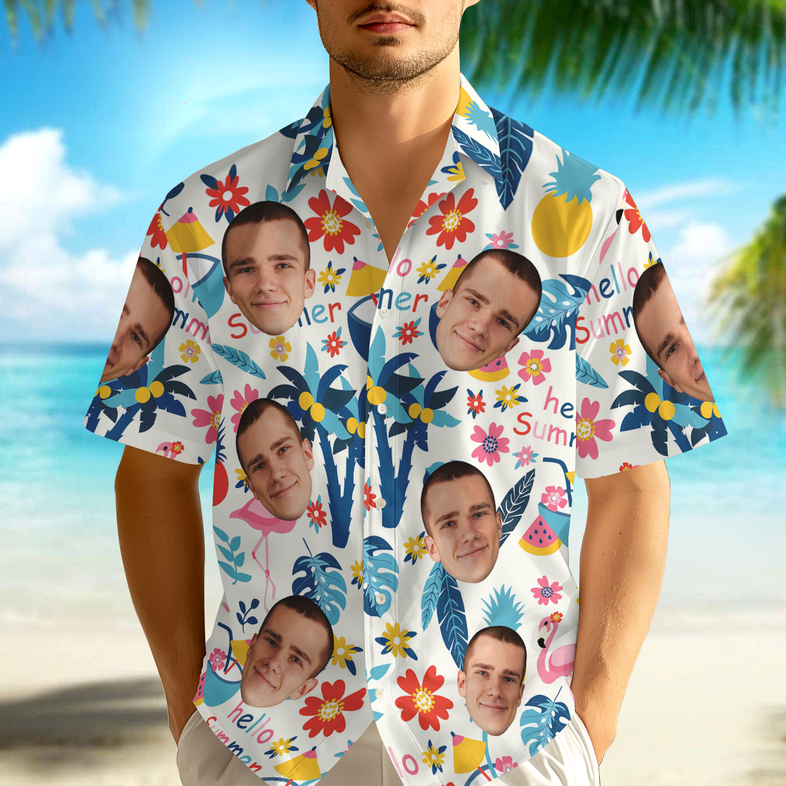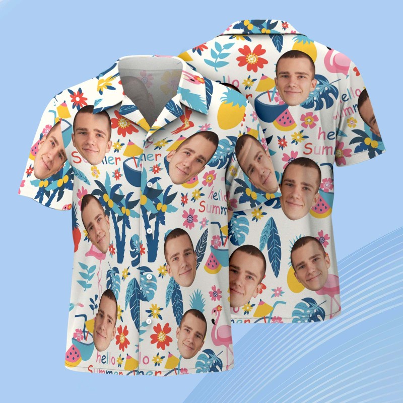 Custom Men's Face Hawaiian Shirt Refreshing Plant Flamingo Hawaiian Shirts