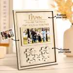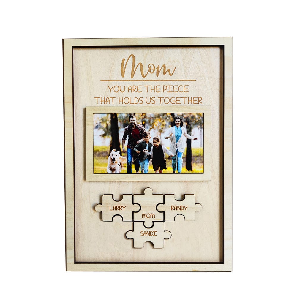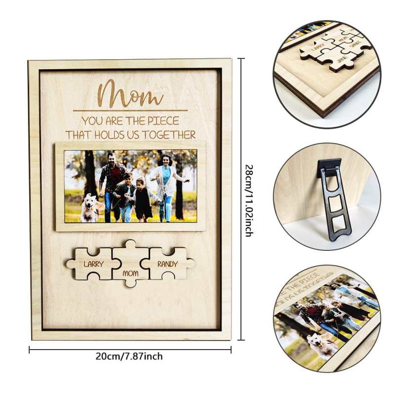 Personalized picture frames for home decor can be customized with your family's picture and family member's name up to 6 names. And proudly proclaim "You Are The Piece That Holds Us Together" to mum.