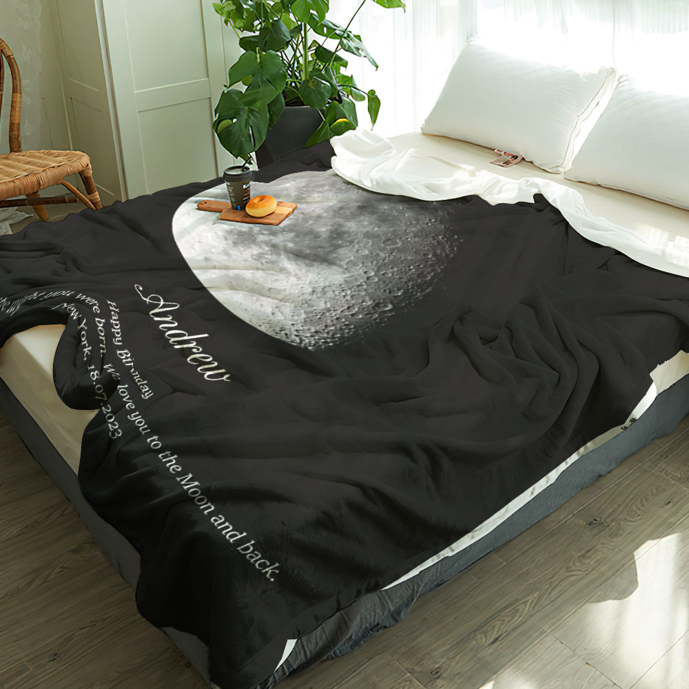 Custom Moon Phase Blanket Personalised Names Birthday Gift