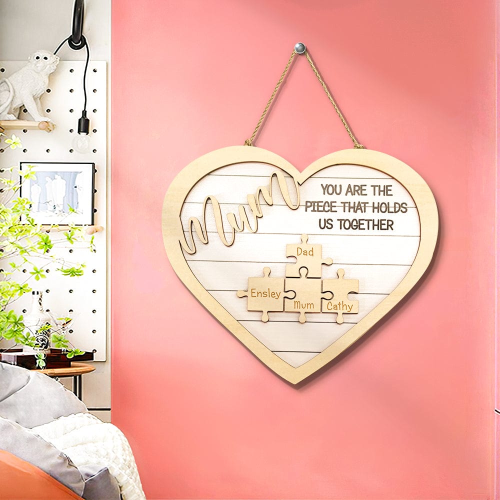 Personalized frames for home decor can be customized with your family's picture and family member's name up to 6 names. And proudly proclaim "You Are The Piece That Holds Us Together" to mum.