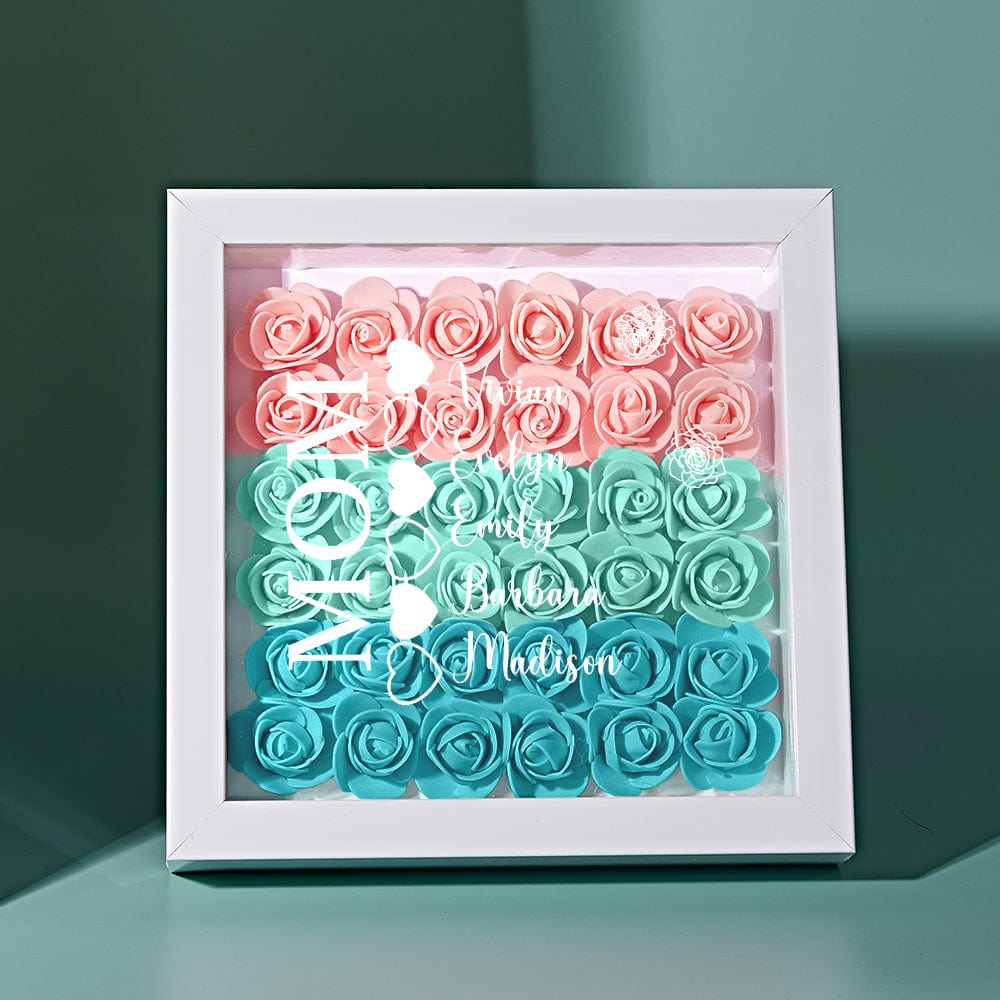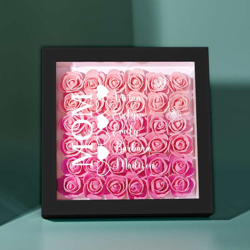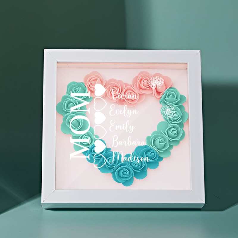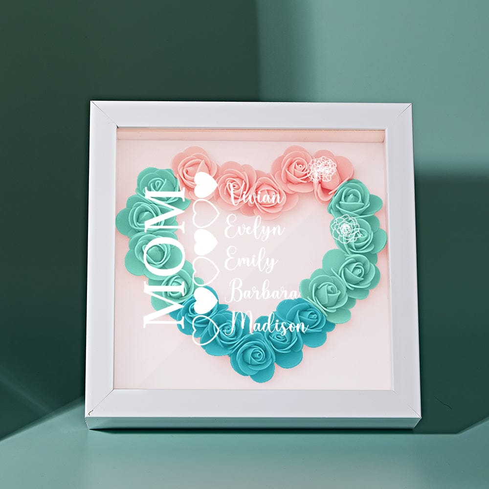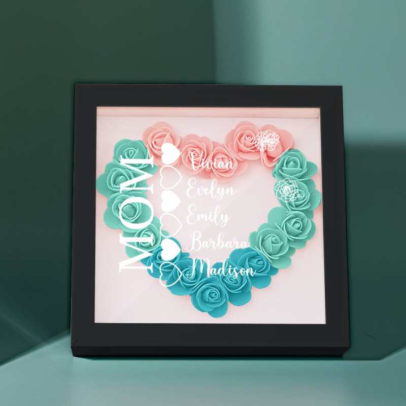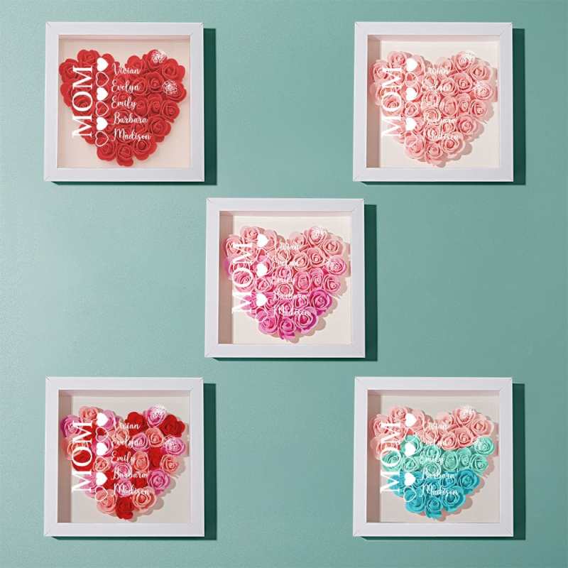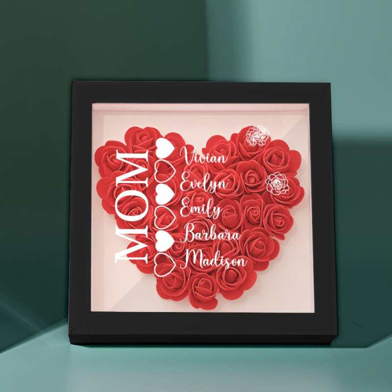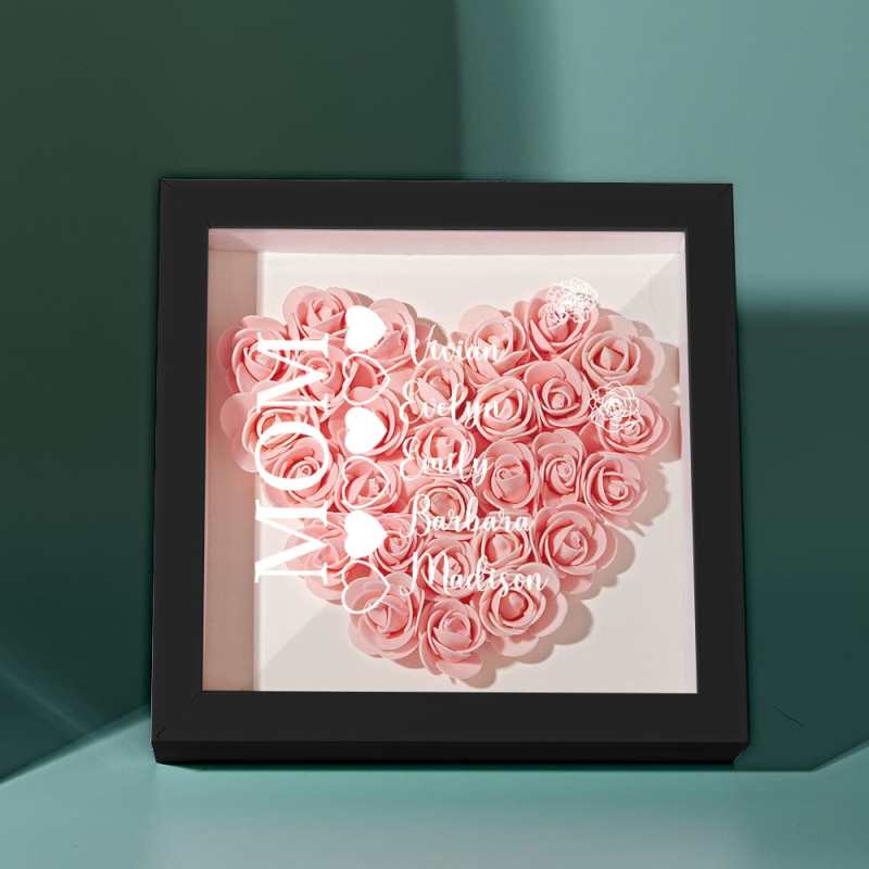 Custom Name Flower Shadow Box Personalized Heart Flower Shadowbox Frame Mother's Day Gift