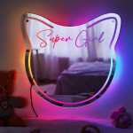 Custom Name Mirror Light Cat Colorful Lights Home Gift