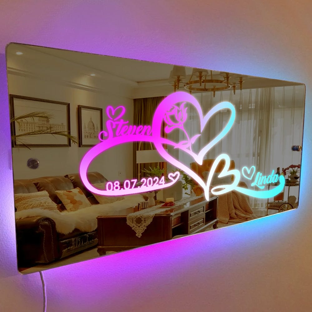 This super stylish personalised name mirror with LED lighting is a perfect and unique edition to your love's bedroom, they will love lighting up the personalised mirror and seeing their name in lights.This eye-catching personalised name mirror makes the perfect gift and it will be cherished and loved for many years to come by the recipient.Includes remote control for LED lighting and chrome wall mounting stand offs.