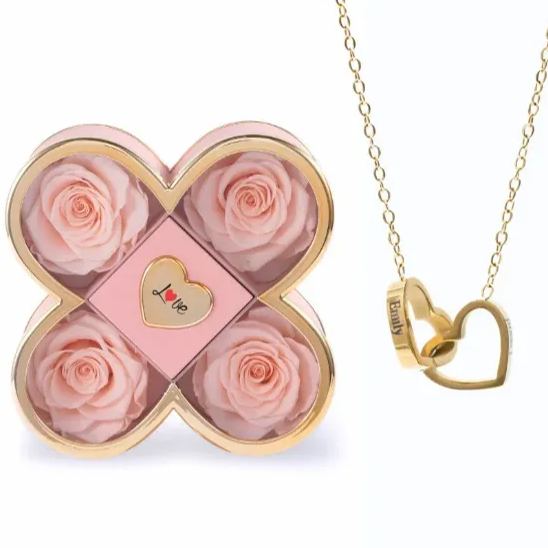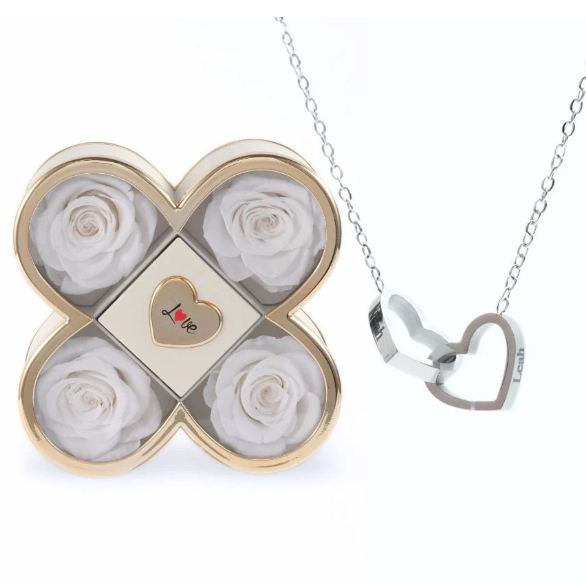 Celebrate love with this personalized heart necklace, elegantly paired with a beautiful rose gift box. Customize two areas with meaningful words, names, or dates to create a one-of-a-kind keepsake.