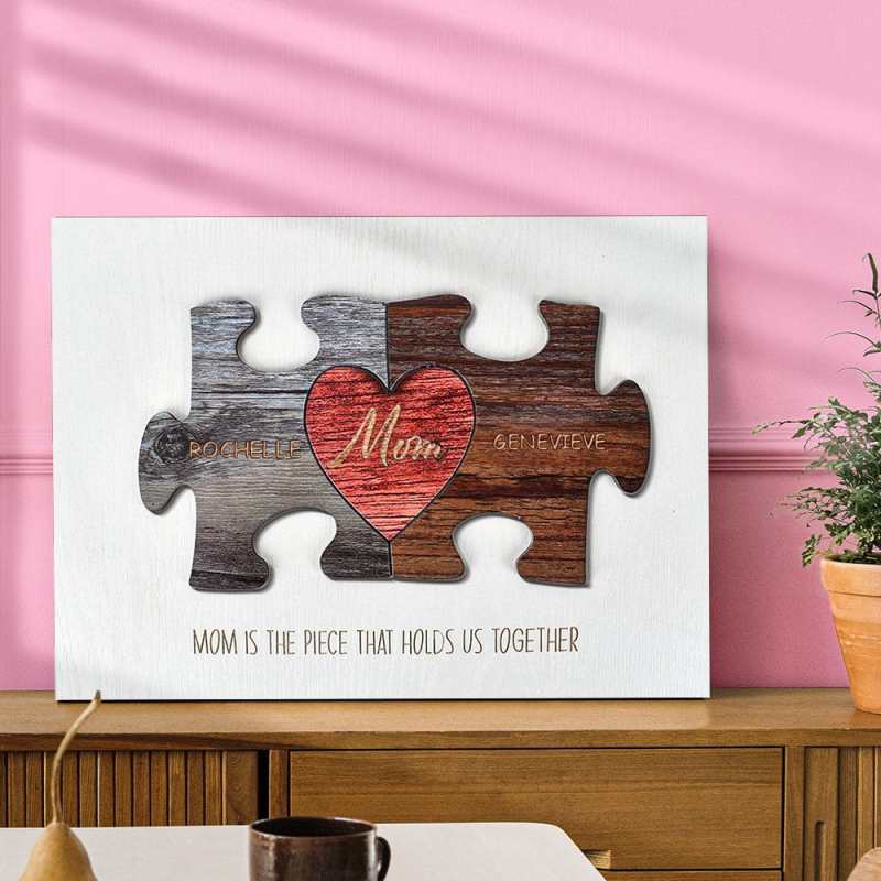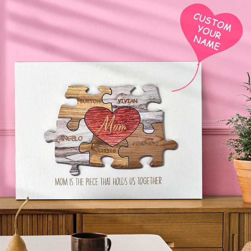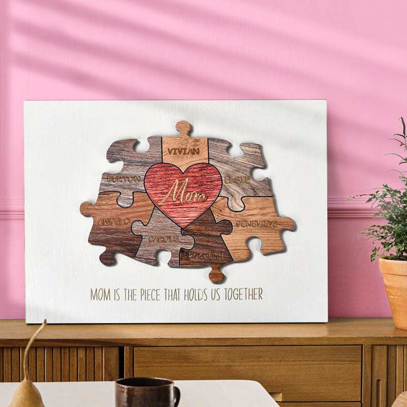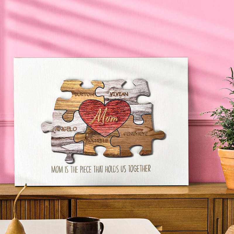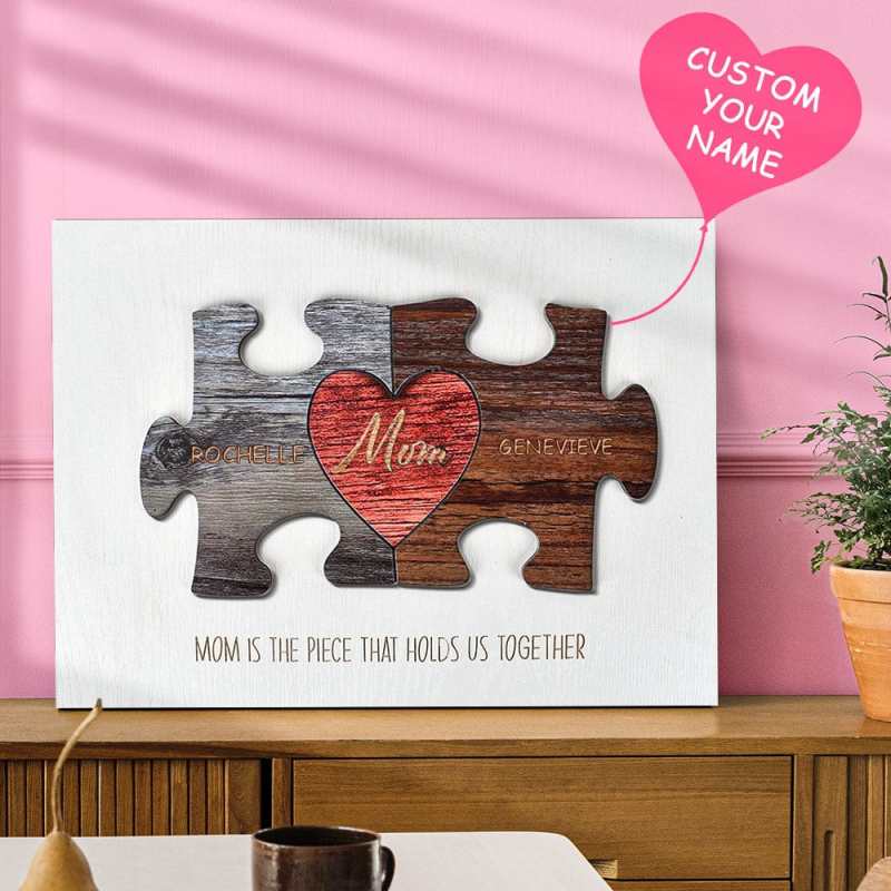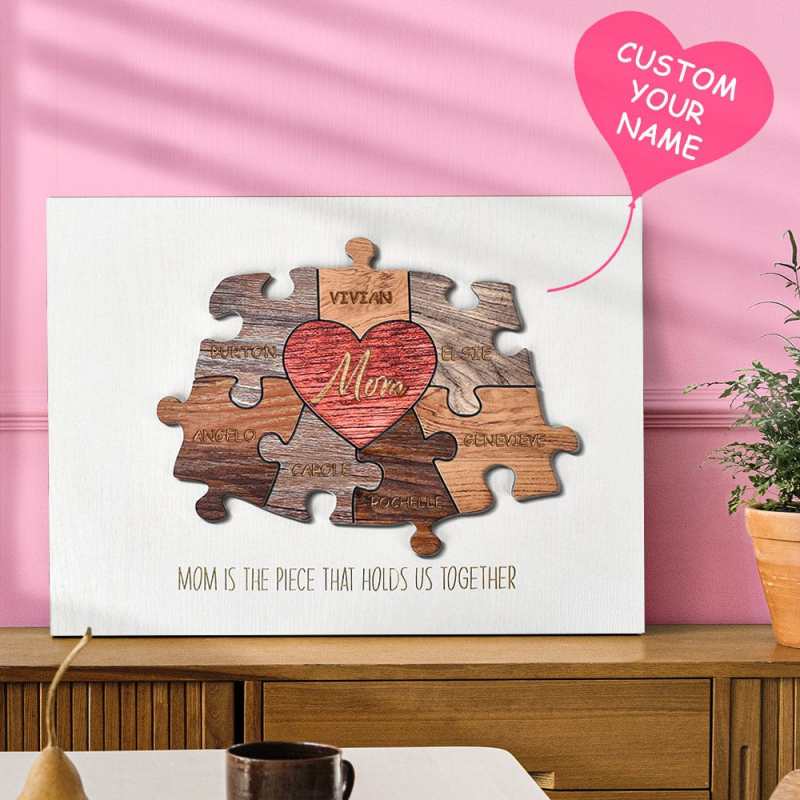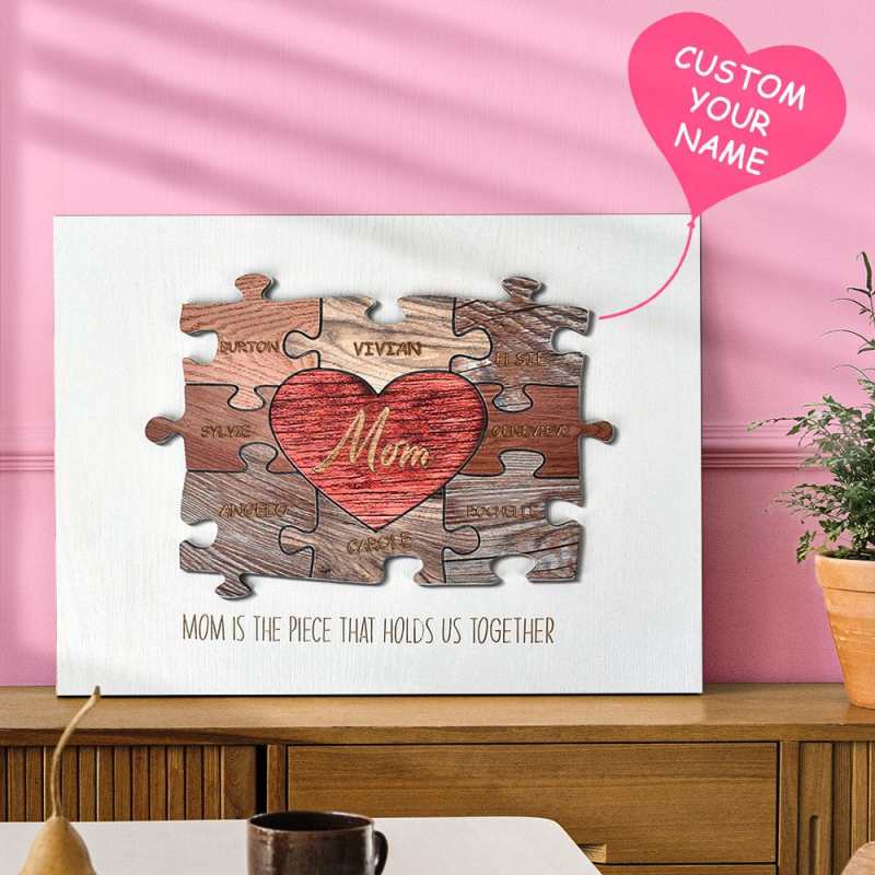 Personalized table desk wall decor can be customized with mom and children's names on the pieces of the puzzle, Mom is like a puzzle piece in the middle, holding all family members together, Show your love for Mom by customizing this home decor for Mom on Mother's Day. Custom Mother's Day Heart Shape Puzzle is not only suitable as a home decoration, but also a meaningful gift for kids, parents, family, friends, lovers, sisters, and best friends.
