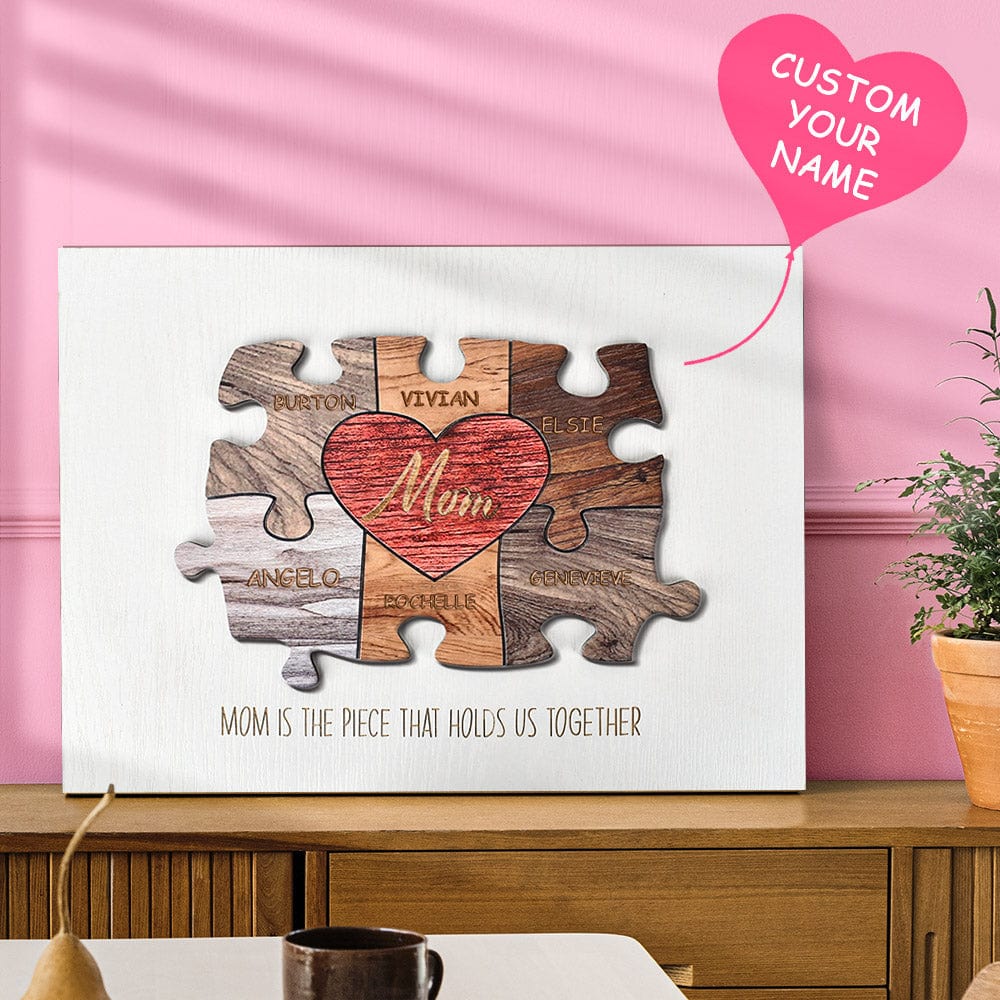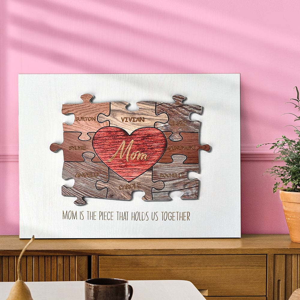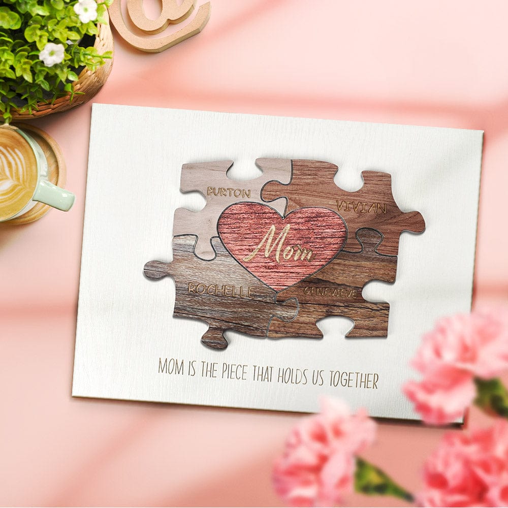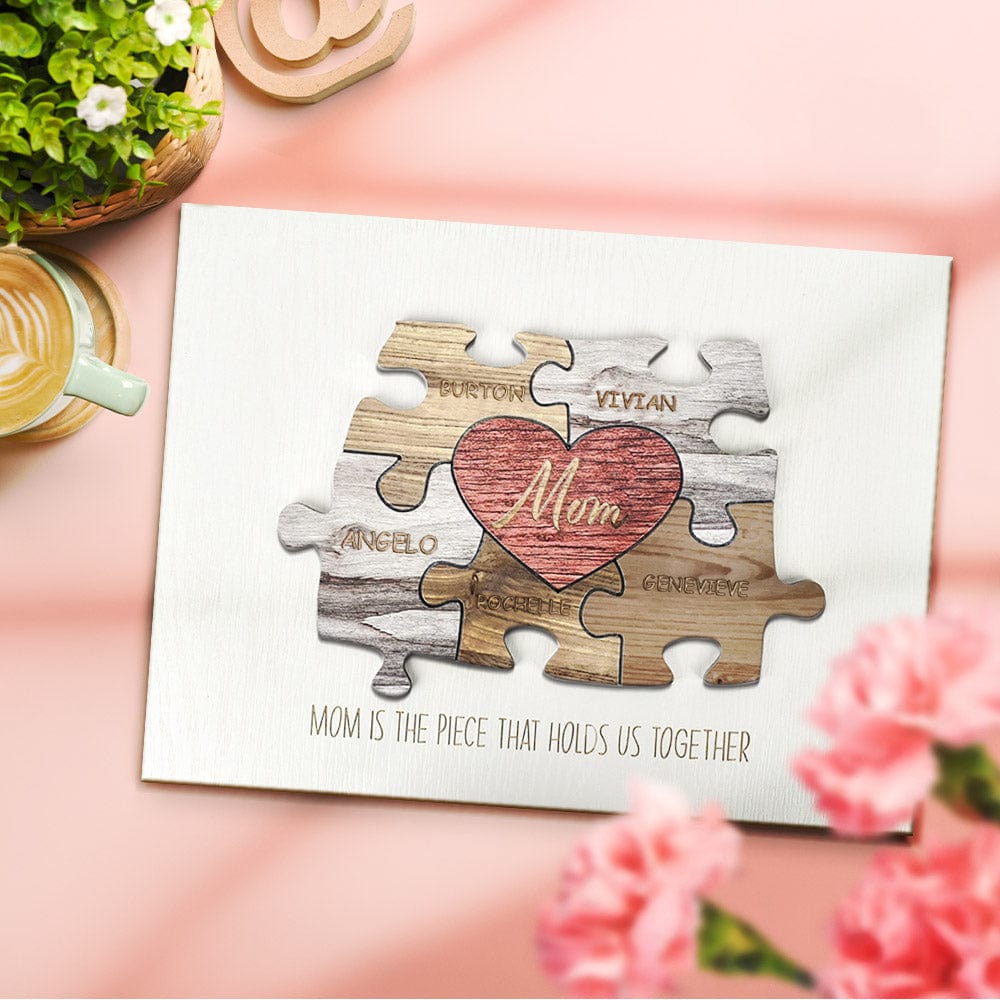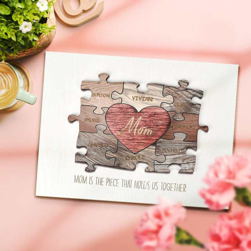 Personalized table desk wall decor can be customized with mom and children's names on the pieces of the puzzle, Mom is like a puzzle piece in the middle, holding all family members together, Show your love for Mom by customizing this home decor for Mom on Mother's Day. Custom Mother's Day Heart Shape Puzzle is not only suitable as a home decoration, but also a meaningful gift for kids, parents, family, friends, lovers, sisters, and best friends.