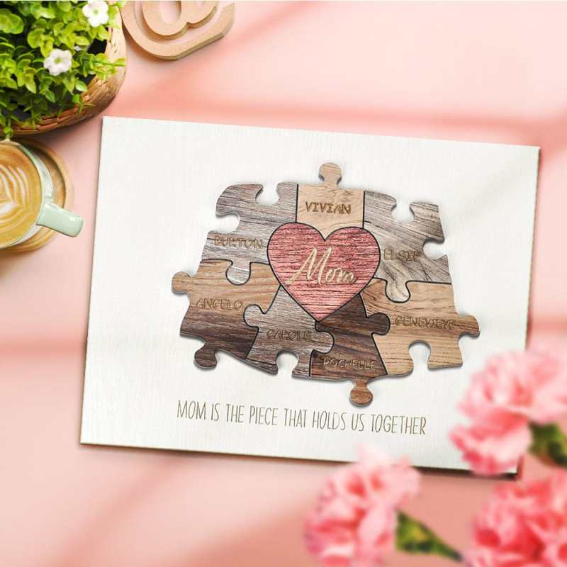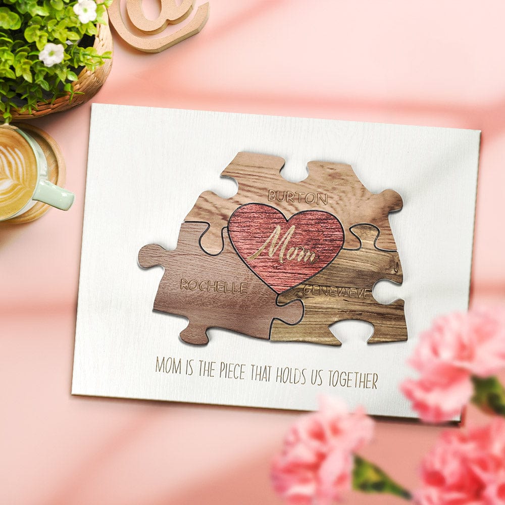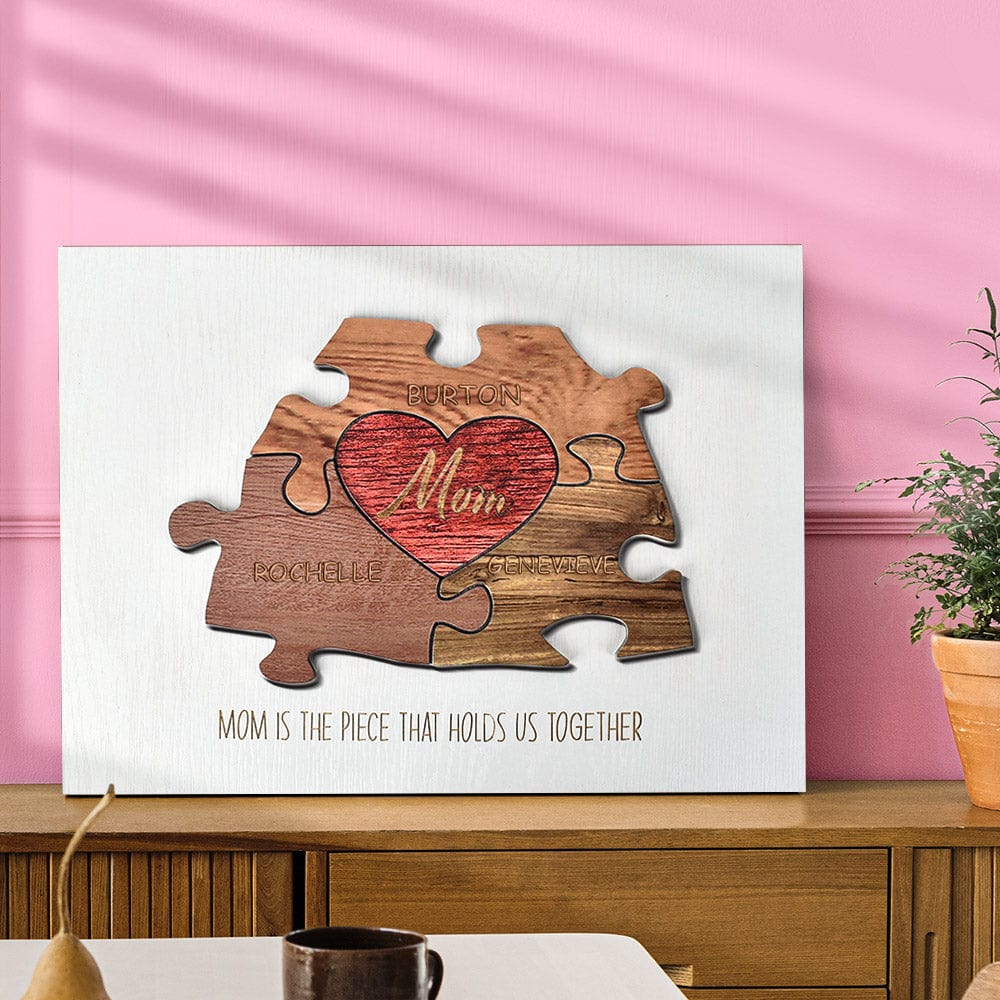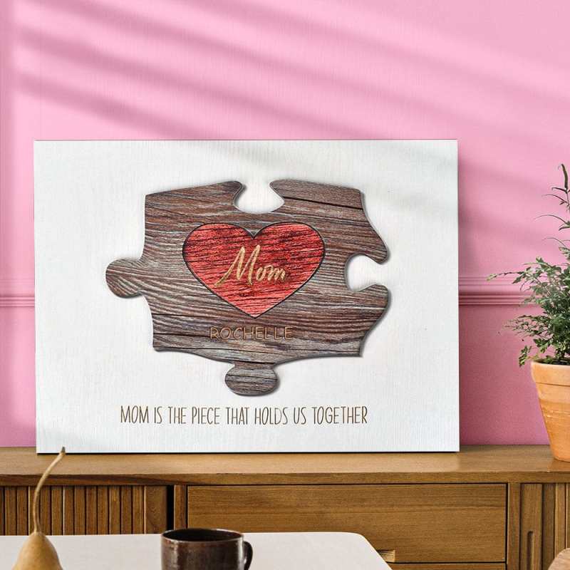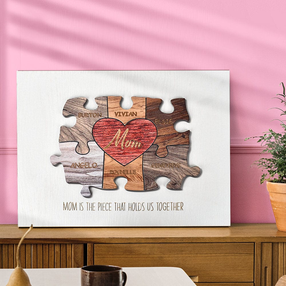 Personalized table desk wall decor can be customized with mom and children's names on the pieces of the puzzle, Mom is like a puzzle piece in the middle, holding all family members together, Show your love for Mom by customizing this home decor for Mom on Mother's Day. Custom Mother's Day Heart Shape Puzzle is not only suitable as a home decoration, but also a meaningful gift for kids, parents, family, friends, lovers, sisters, and best friends.
