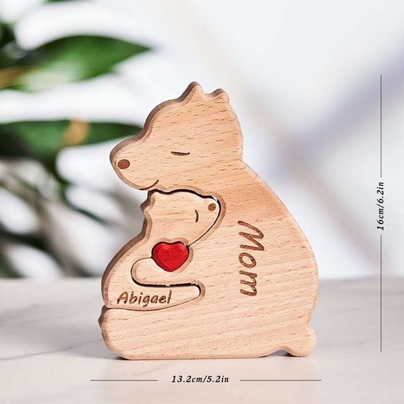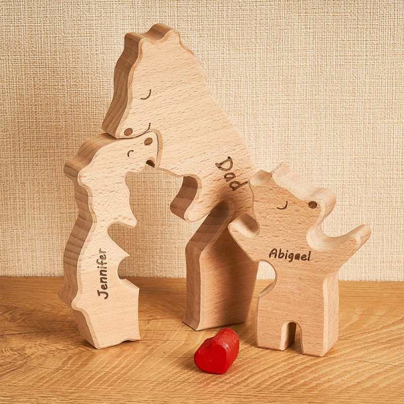 Custom Names Wooden Single Parent Bears Family Block Puzzle Home Decor Gifts