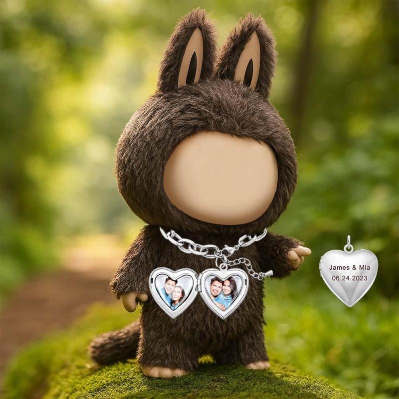 Custom Necklace for Labu Personalized Heart Locket Necklace Monster Doll Necklace Vintage Adjustable Link Necklace Gifts