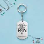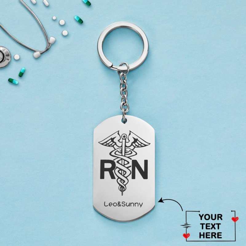 • Silver personalized nurse keychain. It makes a great gift for any nurse, including nursing students or someone who has just become an RN.