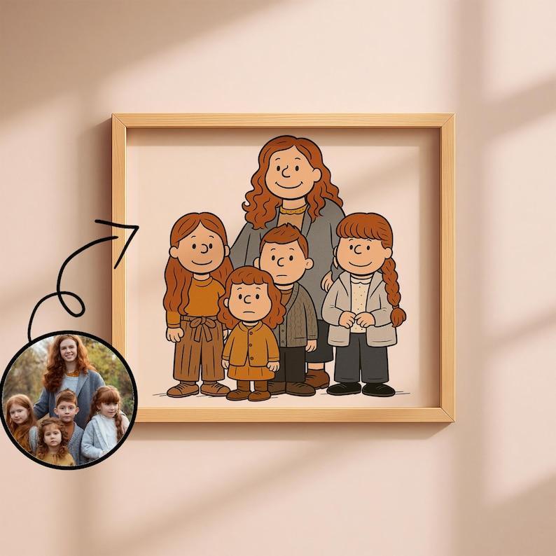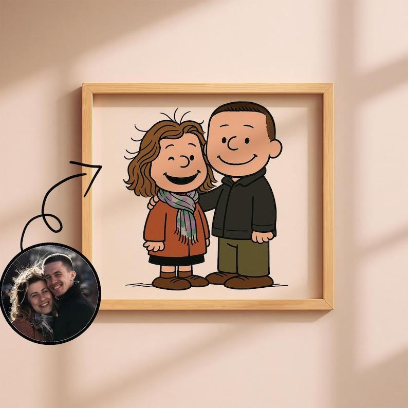 Step into the charming world of Peanuts with a personalized cartoon portrait! This heartwarming artwork turns you and your loved ones into adorable Peanuts-style characters with simple lines, warm vibes, and timeless charm. 💛