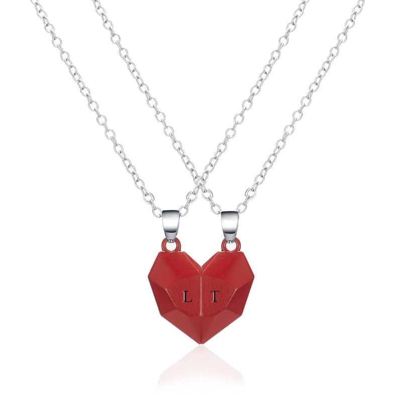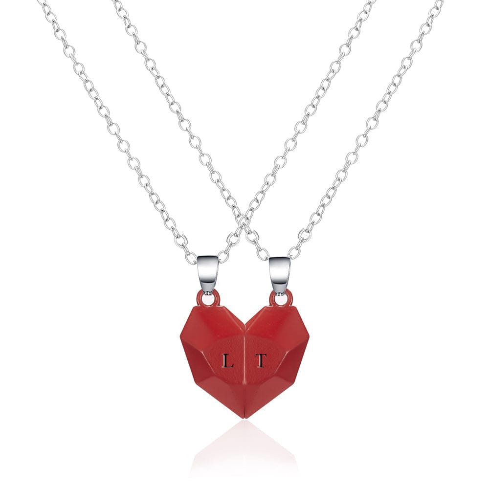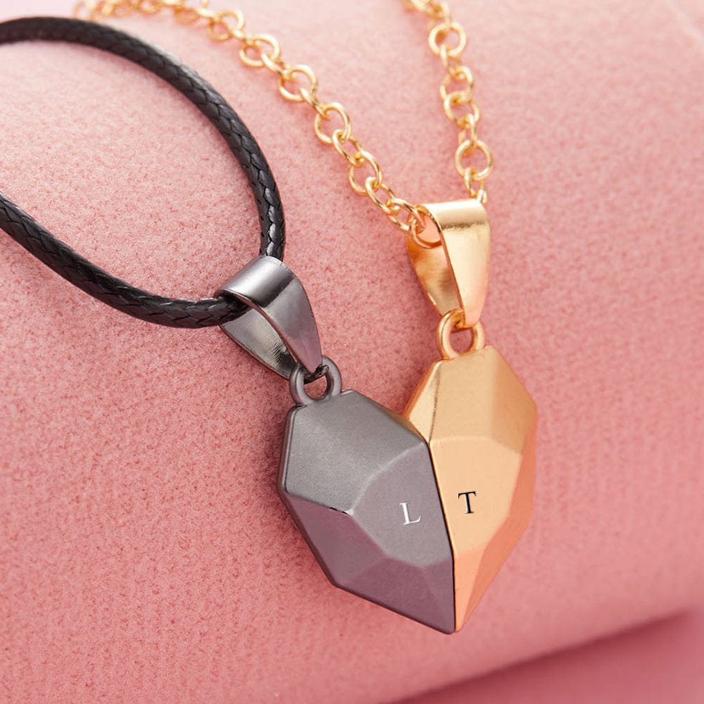 Custom Magnetic Heart Necklace Engraved Matching Necklaces For Couples Valentine's Day Gifts