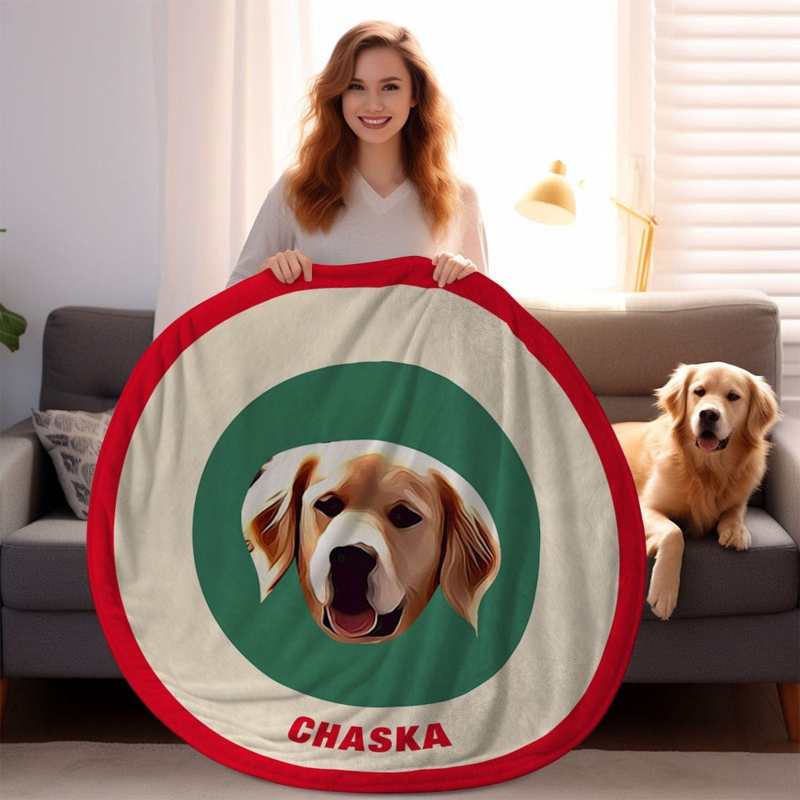 Custom Pet Face Blanket Personalized Round Blanket Gift for Pet Lover - Black & White
