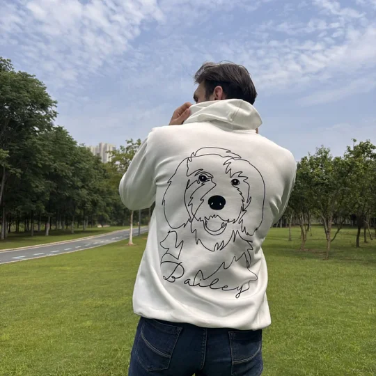 Turn your pet into wearable art with this custom printed hoodie, sweatshirt, or tee - designed from your pet's photo and printed in a clean, modern line art style. It's not just clothing, it's a heartfelt keepsake.