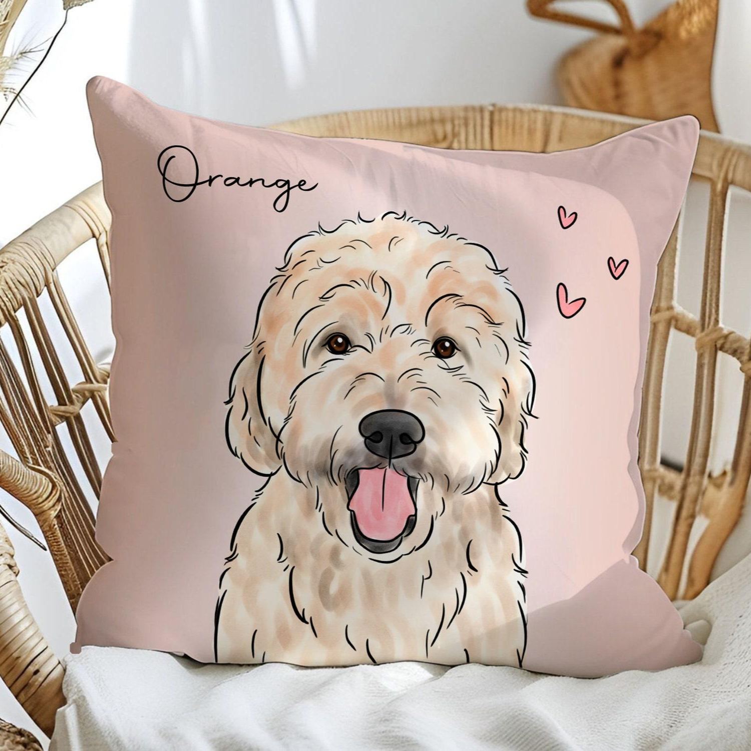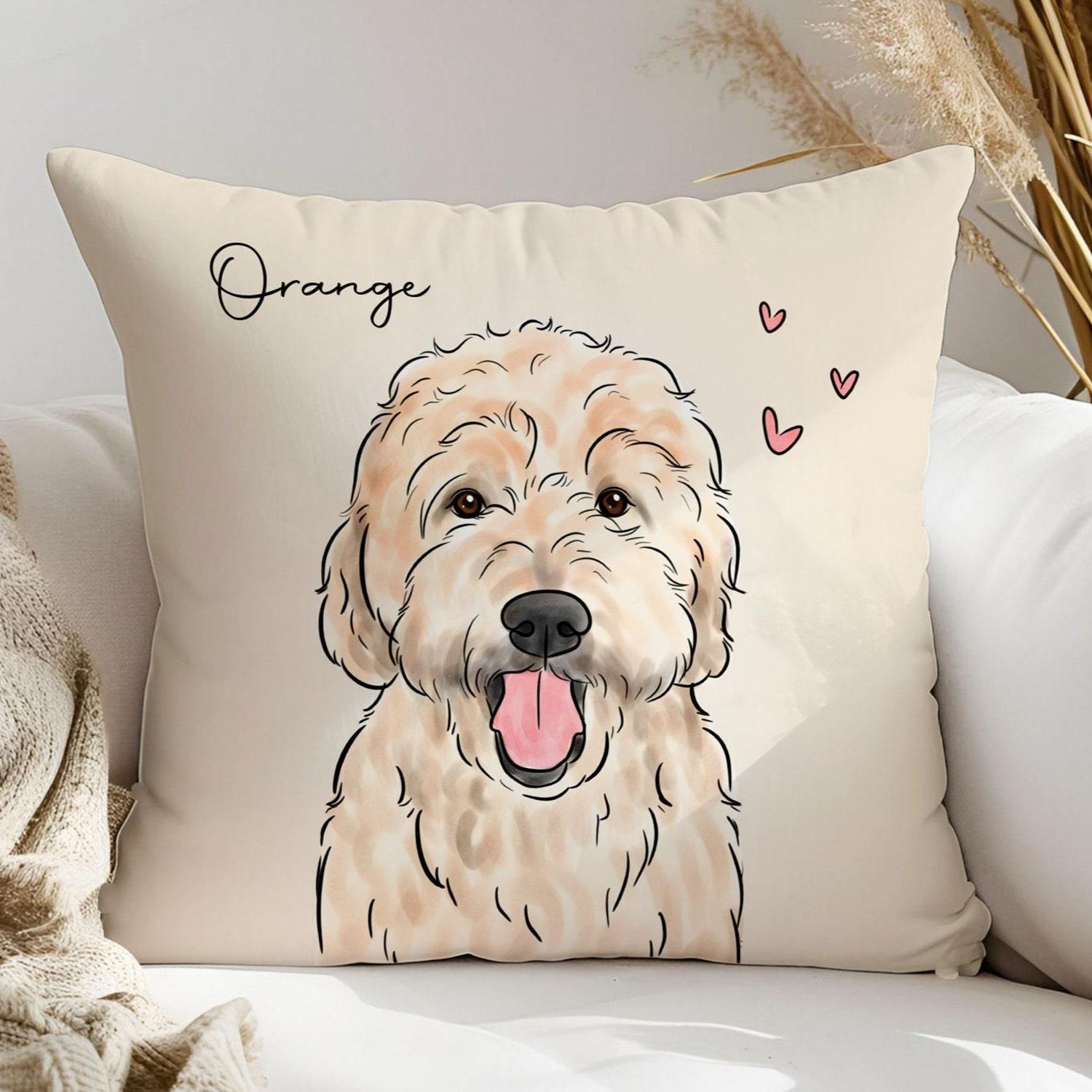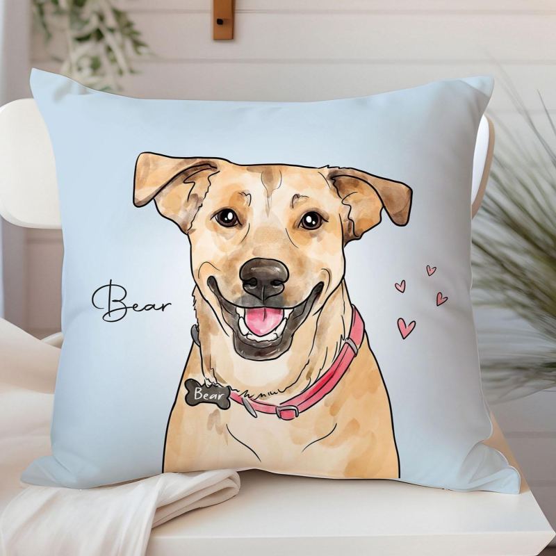 Celebrate your furry friend with our custom pet portrait pillow, a unique and personalized piece that brings your pet’s image to life. This pillow features a beautiful watercolor portrait of your dog, cat, or any beloved pet, created from your provided photo. Each portrait captures the unique features and personality of your pet in stunning detail.