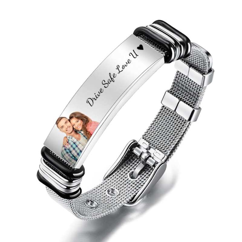 Custom Photo And Engraved Stainless Steel Bracelet Gifts for Boyfriend