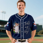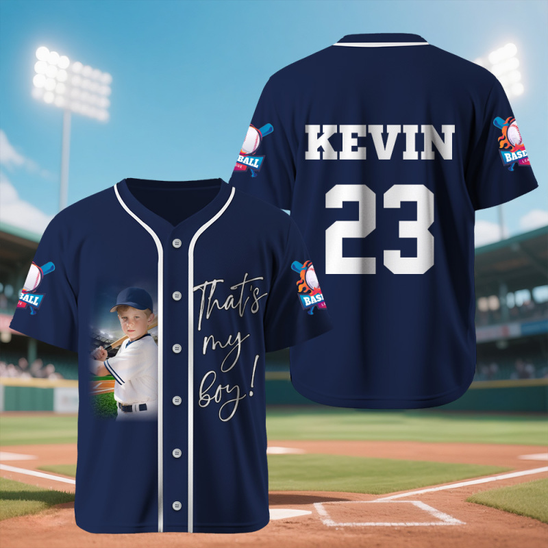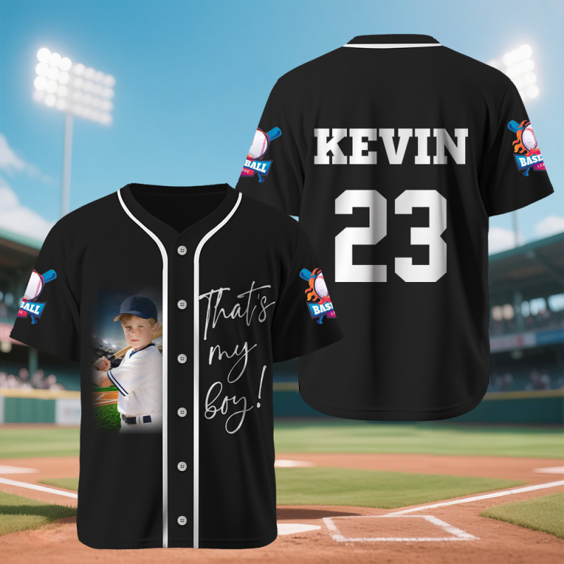 This custom baseball jersey boasts a classic full-button design that includes your personal name and number, ensuring a one-of-a-kind look: