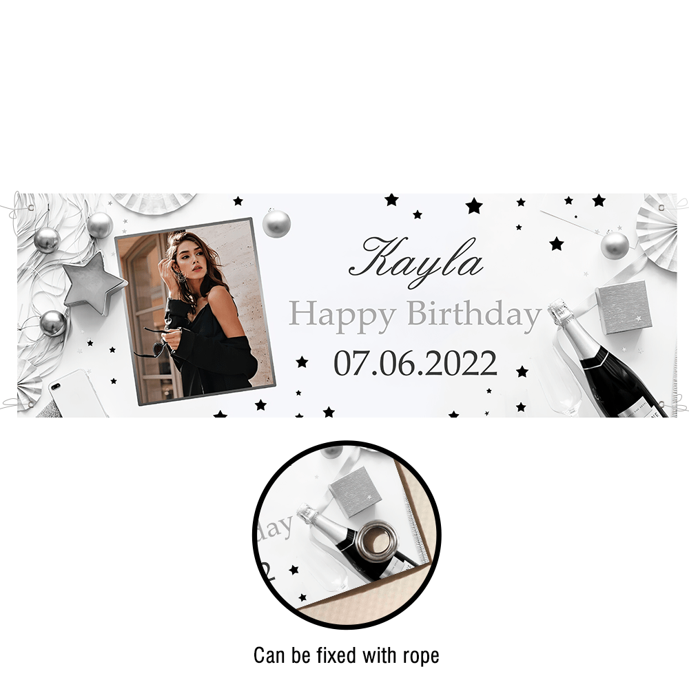 Custom Photo Birthday Banner Personalized Backdrop Decoration Name Birthday Banner for Birthday Party