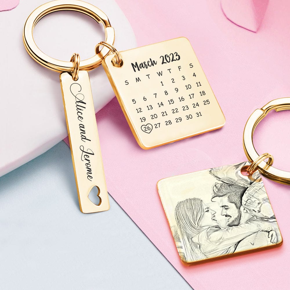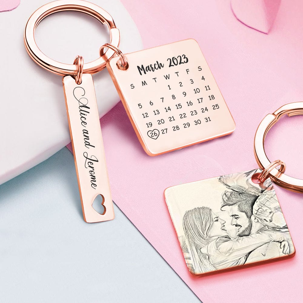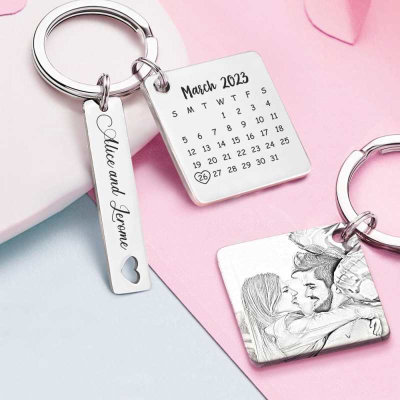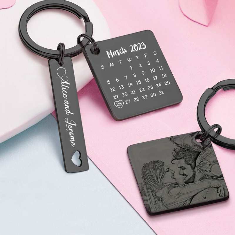 Custom Photo Calendar Keychain Personalized Save The Date Keychain Gift for Lover