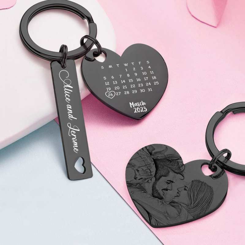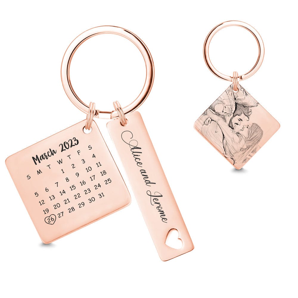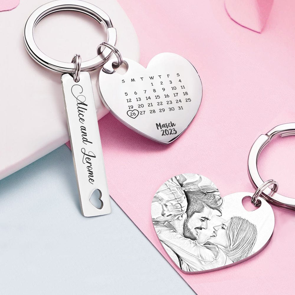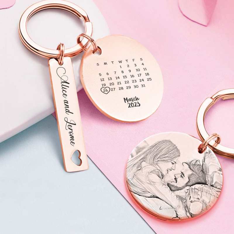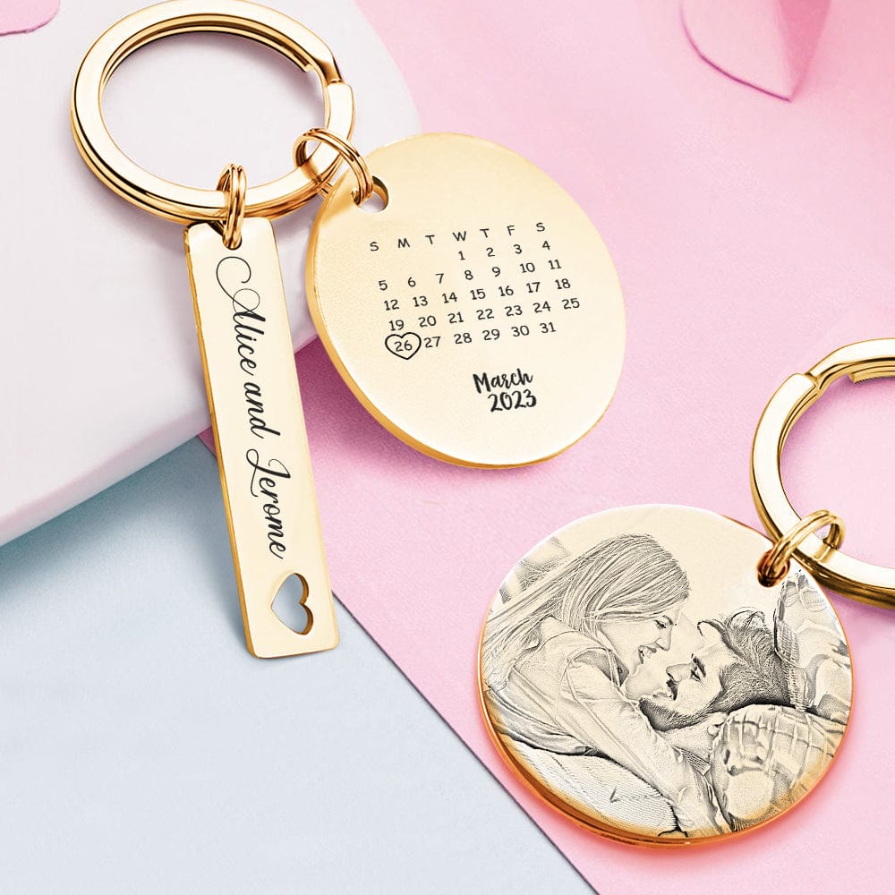 Custom Photo Calendar Keychain Personalized Save The Date Keychain Gift for Lover