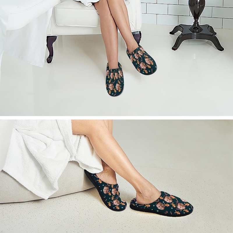 Custom Photo Cotton Slippers Gingerbread And Candy Cane Slippers Gifts for Her