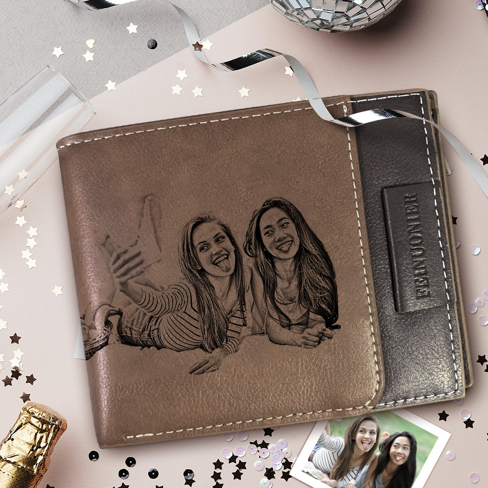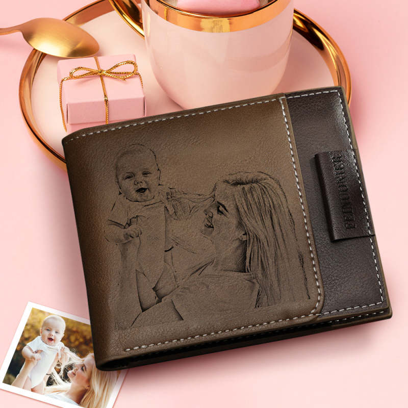 Custom Photo Engraved Short Wallet RFID Blocking Wallet Gifts For Dad