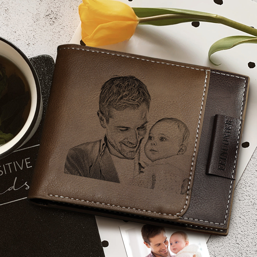 Custom Photo Engraved Short Wallet RFID Blocking Wallet Gifts For Father