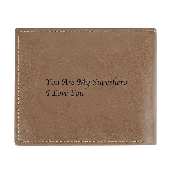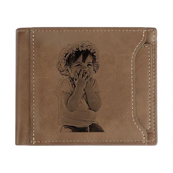 Custom Photo Engraved Wallet Short Style Bifold - Brown Leather