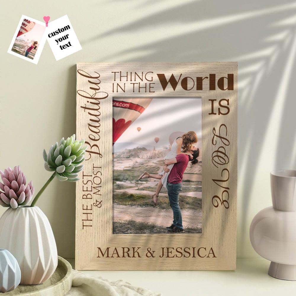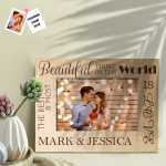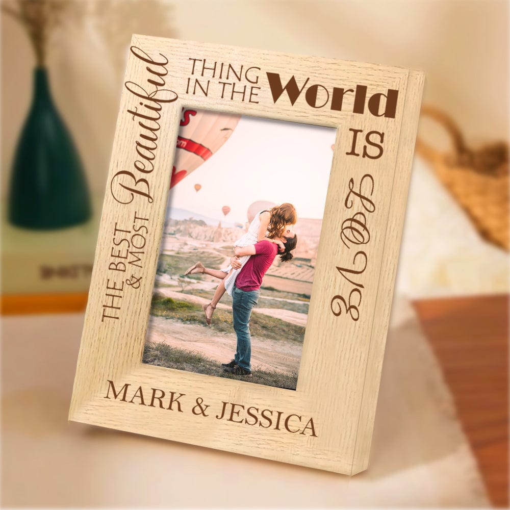 The creative design is delicately UV printed on a handsome, rich wood frame, then personalized with your names, words, and photo for a lasting and memorable keepsake for years to come. You can choose horizontal or vertical orientation.