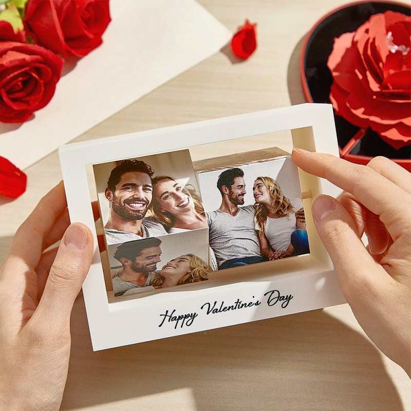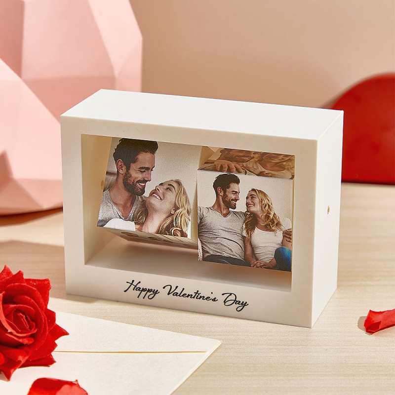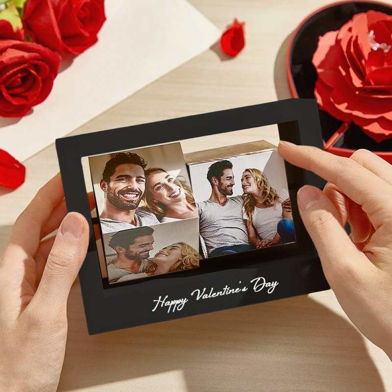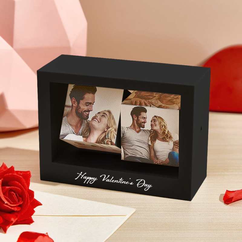 **Custom Rotating Photo Cube Stand - Perfect Valentine's Gift for Her**